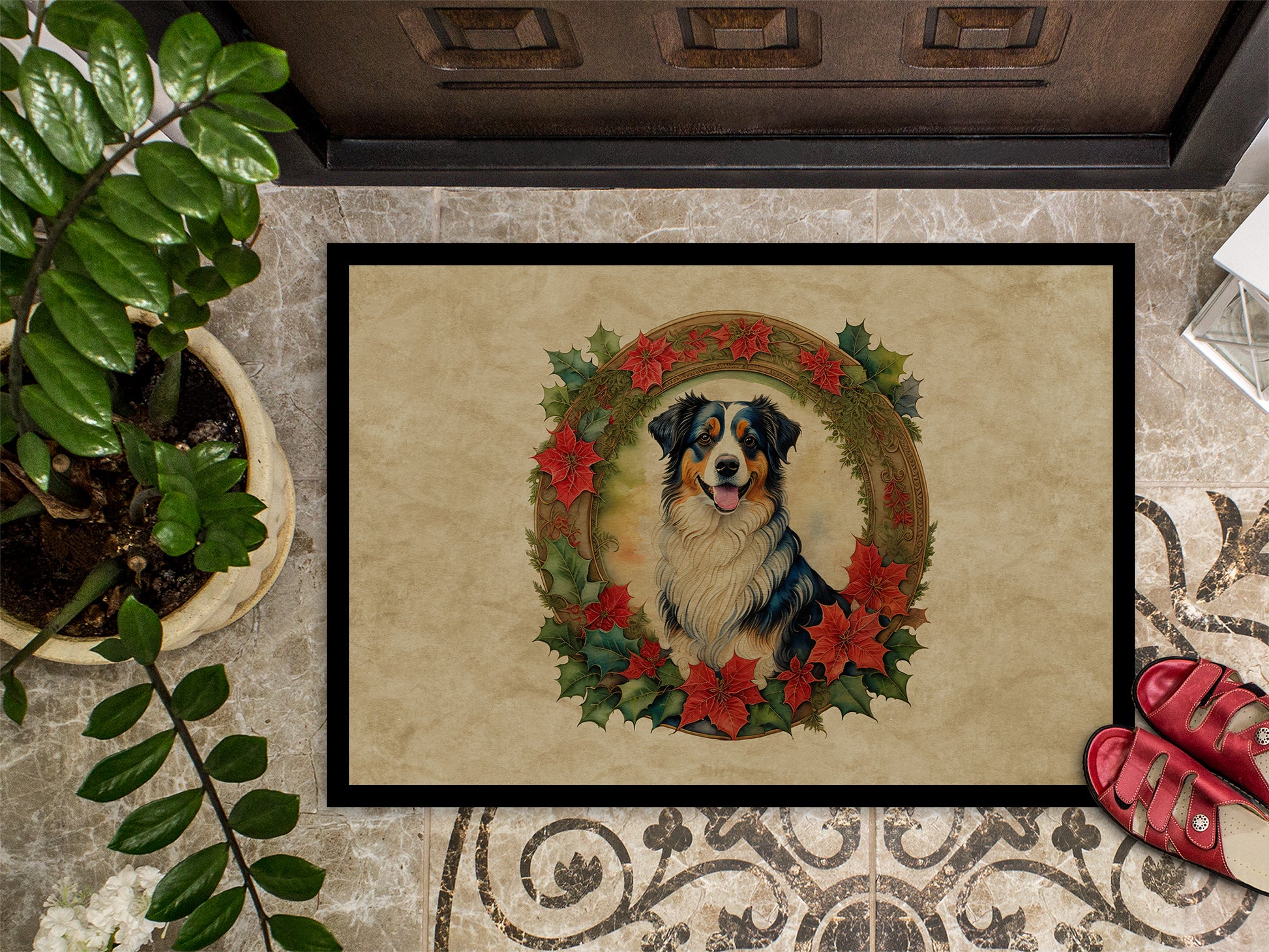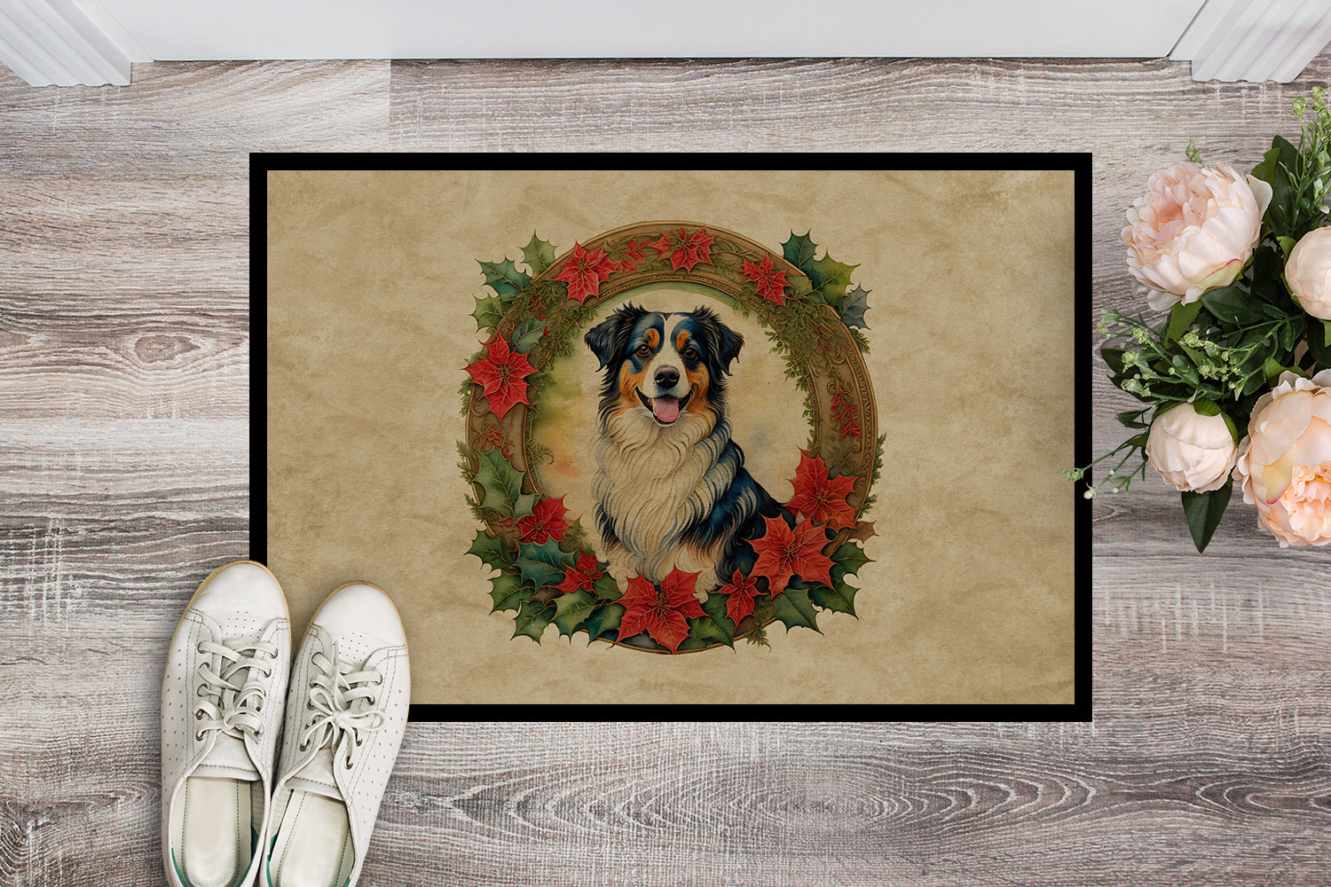 Australian Shepherd Christmas Flowers Doormat