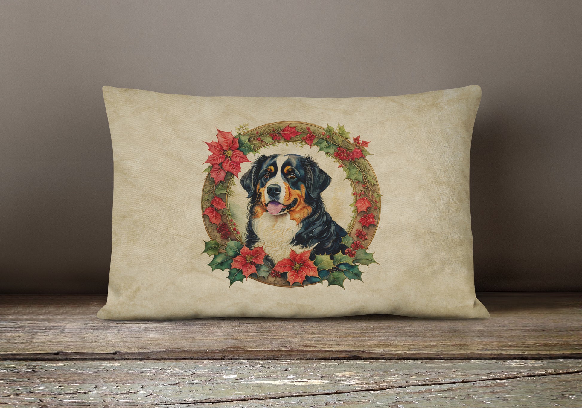 Bernese Mountain Dog Christmas Flowers Throw Pillow