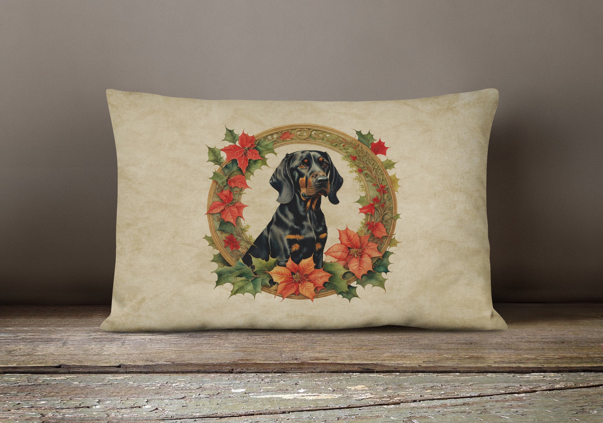 Throw Pillow featuring breed specific Black and Tan Coonhound artwork. Celebrate Christmas with this Christmas Pillow. Embrace the fusion of comfort and style with Caroline's Treasures Fabric Decorative Pillow. This 12x16 inch outdoor pillow is designed to complement your patio furniture, adding a splash of color and artistry to your outdoor setting. Constructed with a 100% Polyester Fabric pillow sham filled with a plush pillow form, this cushion is as comfortable as it is durable. Our outdoor pillow utilizes a novel fabric, meticulously woven for enhanced water resistance. This soft canvas material is equally suited for your indoor couch as well as outdoor settings such as the patio, porch, or veranda. To ensure enduring vibrance, we employ colorfast dyes resistant to fading even when subjected to weather elements. The making of this pillow involves the delicate sewing together of three fabric pieces to create a sham, into which a polyester insert is carefully placed. The result is an overstuffed pillow that tenaciously holds its shape. With both the sham and the pillow insert crafted in the United States, these handmade pillows are a testament to superior local craftsmanship. Note that as these pillows are handmade, sizes may slightly vary, enhancing their unique appeal. Enjoy comfort in style with Caroline's Treasures Fabric Decorative Pillow.