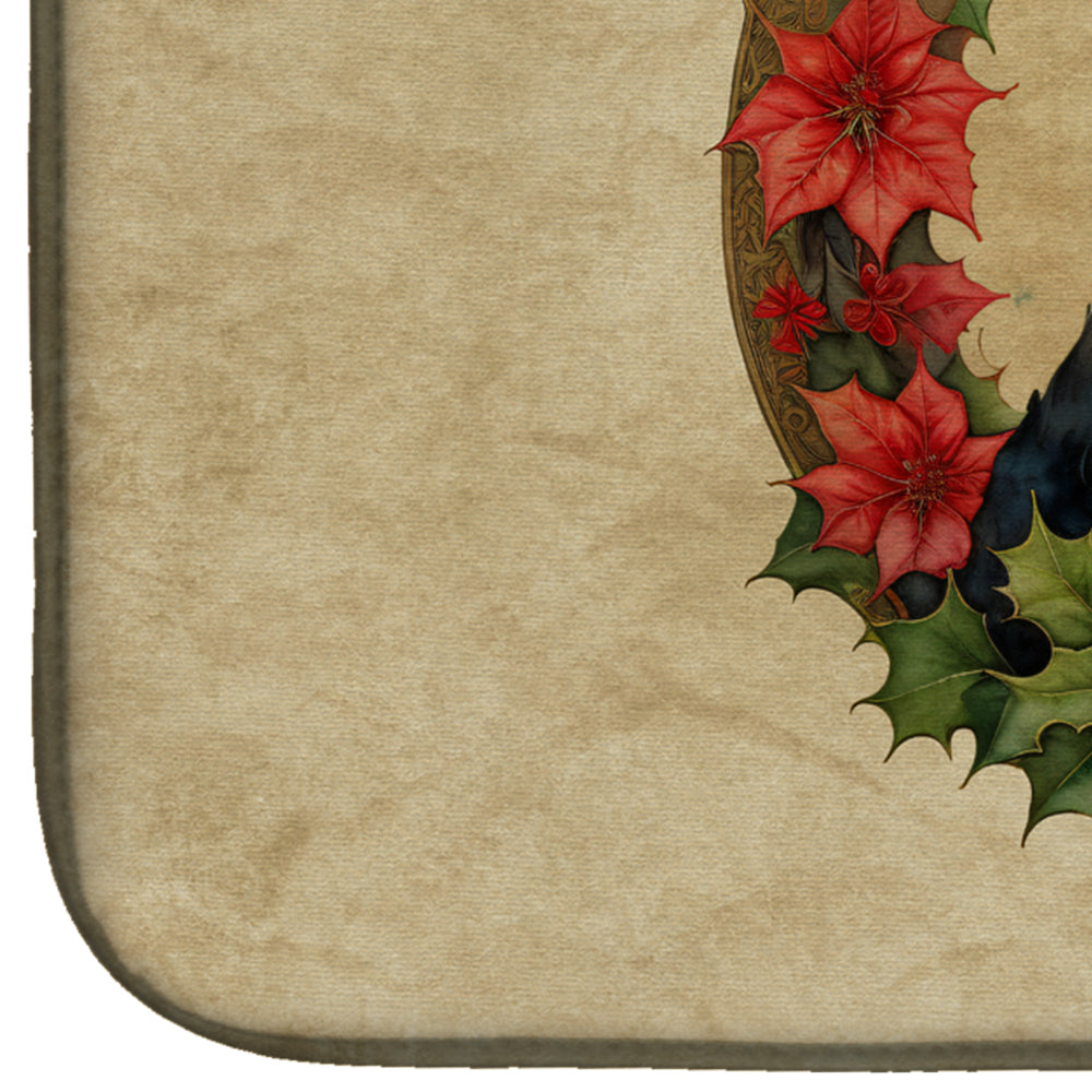 Dish Drying Mat featuring breed specific Black Russian Terrier artwork. Celebrate Christmas with this Christmas Dish Drying Mat. Say goodbye to messy countertops and soggy dish towels with our innovative dish drying mat. Our high-quality dish drying pad is designed to keep your countertops dry while offering a stylish and efficient solution. Whether you're air drying dishes, glasses, stemware, silverware, pots, pans, bottles, or even fruits and vegetables, our dish mat is the perfect choice. The 14 inches x 22 inches size fits most counters and dish drying racks, and the non-slip design ensures stability. Made with water-absorbent polyester and a polyurethane foam insert, our dish drying mat is not only functional but also durable. It's machine washable and printed in the USA for long-lasting use. The beautiful artwork adds flair to your kitchen decor, making it a perfect housewarming gift or present for any occasion. Upgrade your kitchen experience with our absorbent and versatile dish drying mat.