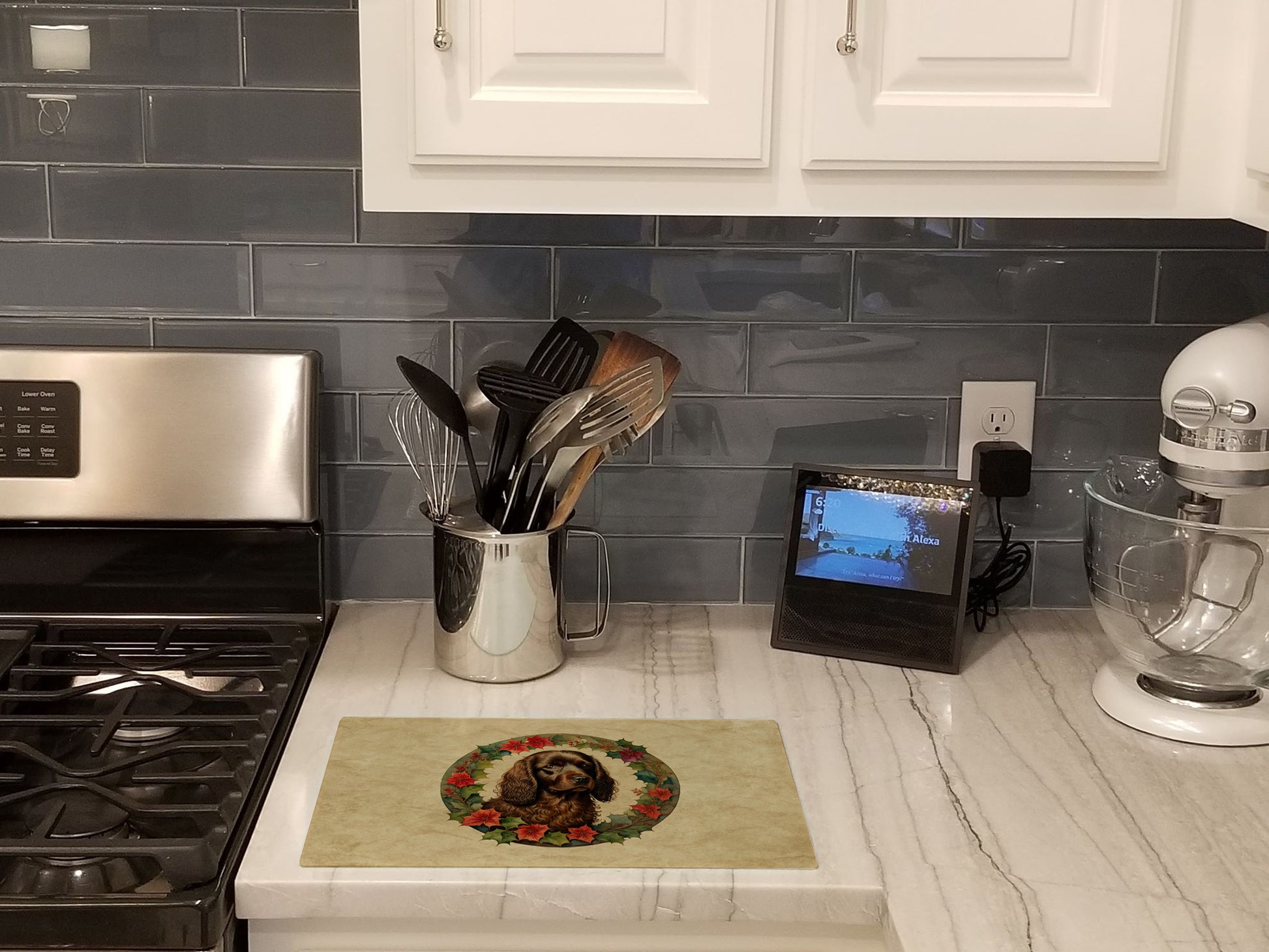 Glass Cutting Board featuring breed specific Boykin Spaniel artwork. Celebrate Christmas with this Christmas Cutting Board. Introduce your kitchen to the vibrant, large Decorative Glass Cutting Board from Caroline's Treasures. Crafted from resilient tempered glass, this board is not only a utilitarian necessity but also a colorful art piece. With its generous dimensions of 15 inches in height and 12 inches in length, it offers ample space for all your cutting needs. Every piece showcases captivating artwork from distinguished artists, bringing an aesthetic edge to your kitchen. Beyond its attractive design, this cutting board ensures your countertop stays pristine and unscathed, owing to its heat-resistant properties. Engineered with user convenience in mind, it features non-skid feet for stability, and rounded corners for additional safety. Its robust construction renders it virtually unbreakable, guaranteeing longevity. The board comes with protective feet bumpers, maintaining its position during use. This product is recommended to be hand washed only. Proudly printed and assembled in the United States, this cutting board exemplifies superior craftsmanship. With Caroline's Treasures' Decorative Glass Cutting Board, you're investing in a blend of functionality and artistic flair.