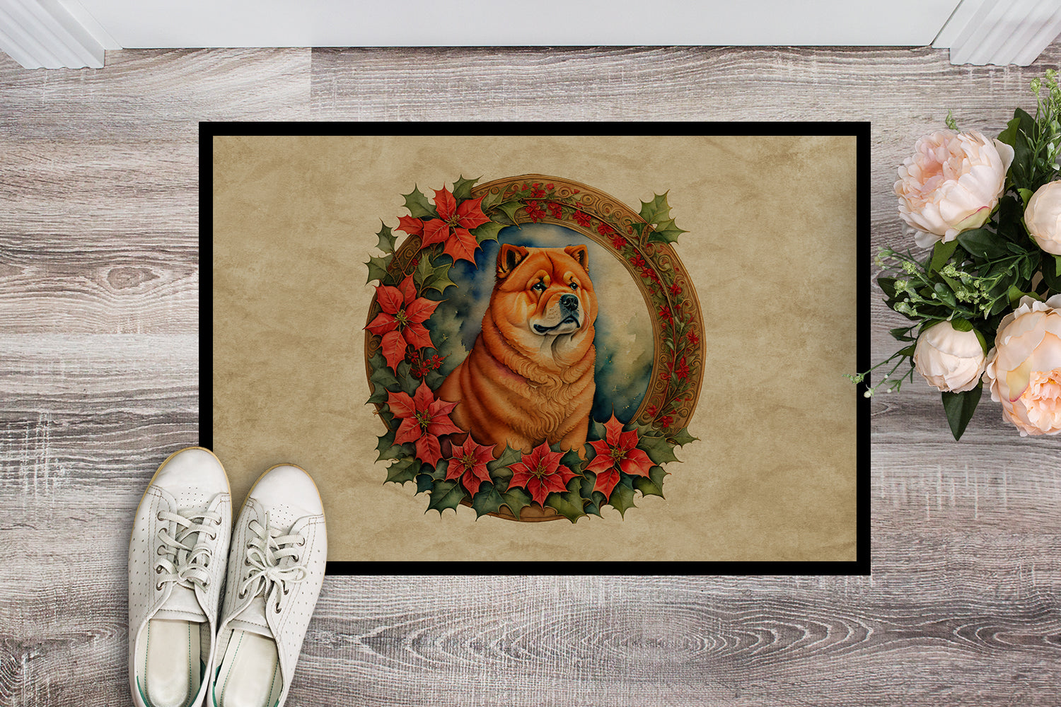 Chow Chow Christmas Flowers Doormat