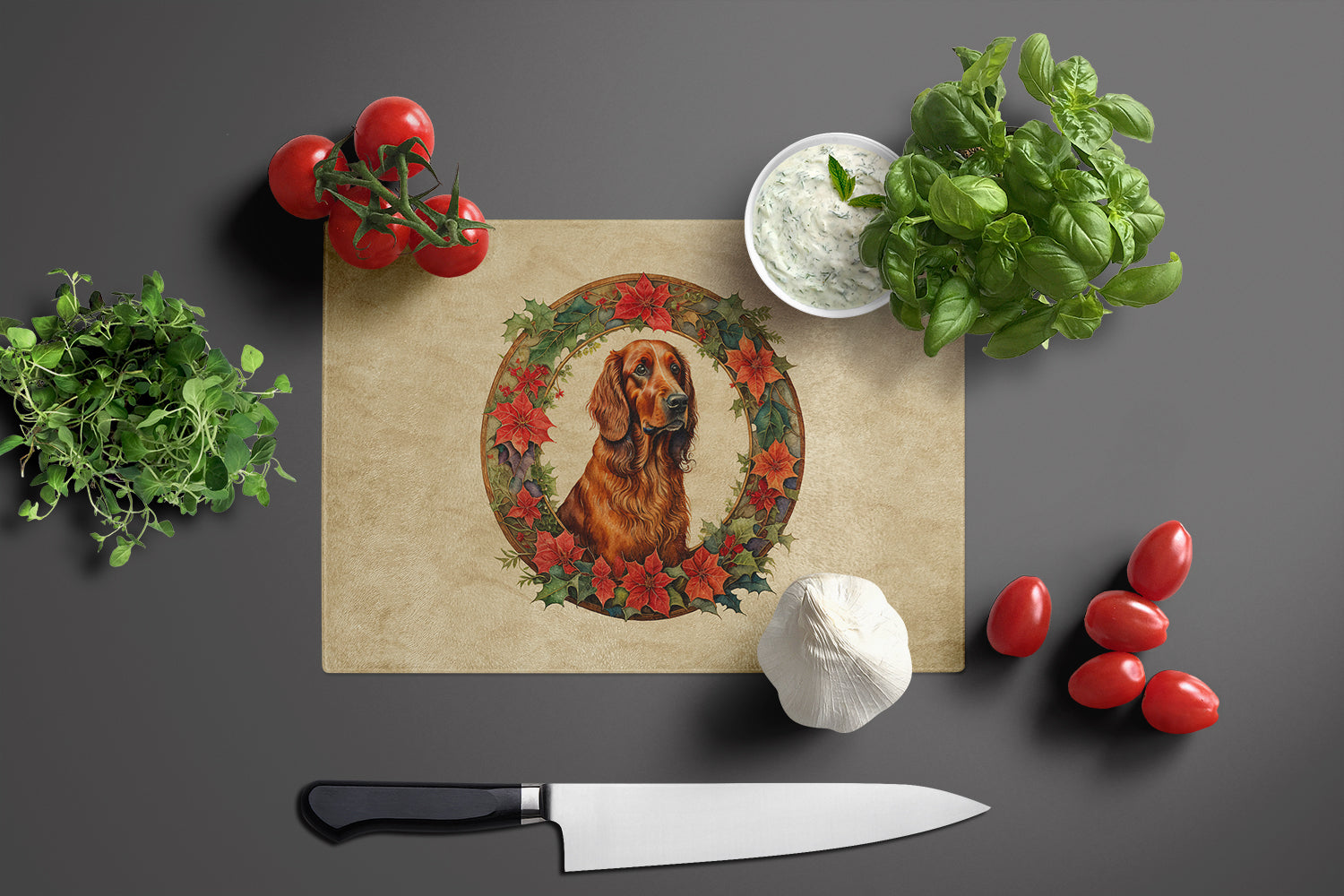 Irish Setter Christmas Flowers Glass Cutting Board