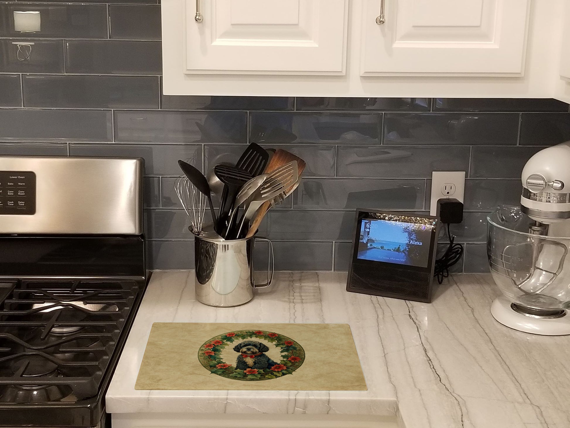 Portuguese Water Dog Christmas Flowers Glass Cutting Board