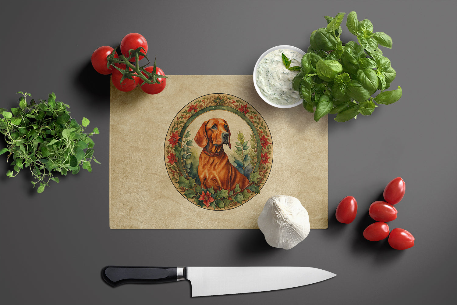 Glass Cutting Board featuring breed specific Red Redbone Coonhound artwork. Celebrate Christmas with this Christmas Cutting Board. Introduce your kitchen to the vibrant, large Decorative Glass Cutting Board from Caroline's Treasures. Crafted from resilient tempered glass, this board is not only a utilitarian necessity but also a colorful art piece. With its generous dimensions of 15 inches in height and 12 inches in length, it offers ample space for all your cutting needs. Every piece showcases captivating artwork from distinguished artists, bringing an aesthetic edge to your kitchen. Beyond its attractive design, this cutting board ensures your countertop stays pristine and unscathed, owing to its heat-resistant properties. Engineered with user convenience in mind, it features non-skid feet for stability, and rounded corners for additional safety. Its robust construction renders it virtually unbreakable, guaranteeing longevity. The board comes with protective feet bumpers, maintaining its position during use. This product is recommended to be hand washed only. Proudly printed and assembled in the United States, this cutting board exemplifies superior craftsmanship. With Caroline's Treasures' Decorative Glass Cutting Board, you're investing in a blend of functionality and artistic flair.