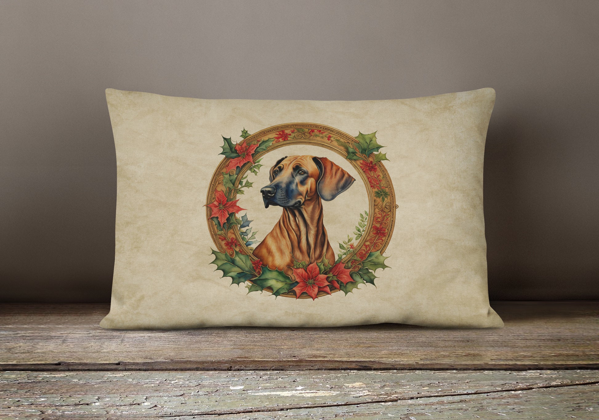 Throw Pillow featuring breed specific Rhodesian Ridgeback artwork. Celebrate Christmas with this Christmas Pillow. Embrace the fusion of comfort and style with Caroline's Treasures Fabric Decorative Pillow. This 12x16 inch outdoor pillow is designed to complement your patio furniture, adding a splash of color and artistry to your outdoor setting. Constructed with a 100% Polyester Fabric pillow sham filled with a plush pillow form, this cushion is as comfortable as it is durable. Our outdoor pillow utilizes a novel fabric, meticulously woven for enhanced water resistance. This soft canvas material is equally suited for your indoor couch as well as outdoor settings such as the patio, porch, or veranda. To ensure enduring vibrance, we employ colorfast dyes resistant to fading even when subjected to weather elements. The making of this pillow involves the delicate sewing together of three fabric pieces to create a sham, into which a polyester insert is carefully placed. The result is an overstuffed pillow that tenaciously holds its shape. With both the sham and the pillow insert crafted in the United States, these handmade pillows are a testament to superior local craftsmanship. Note that as these pillows are handmade, sizes may slightly vary, enhancing their unique appeal. Enjoy comfort in style with Caroline's Treasures Fabric Decorative Pillow.