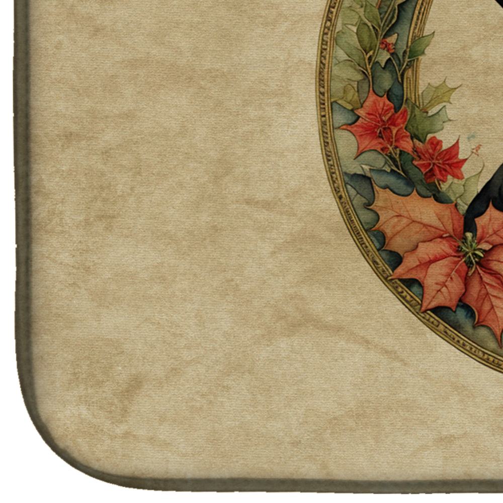 Dish Drying Mat featuring breed specific Schnauzer artwork. Celebrate Christmas with this Christmas Dish Drying Mat. Say goodbye to messy countertops and soggy dish towels with our innovative dish drying mat. Our high-quality dish drying pad is designed to keep your countertops dry while offering a stylish and efficient solution. Whether you're air drying dishes, glasses, stemware, silverware, pots, pans, bottles, or even fruits and vegetables, our dish mat is the perfect choice. The 14 inches x 22 inches size fits most counters and dish drying racks, and the non-slip design ensures stability. Made with water-absorbent polyester and a polyurethane foam insert, our dish drying mat is not only functional but also durable. It's machine washable and printed in the USA for long-lasting use. The beautiful artwork adds flair to your kitchen decor, making it a perfect housewarming gift or present for any occasion. Upgrade your kitchen experience with our absorbent and versatile dish drying mat.
