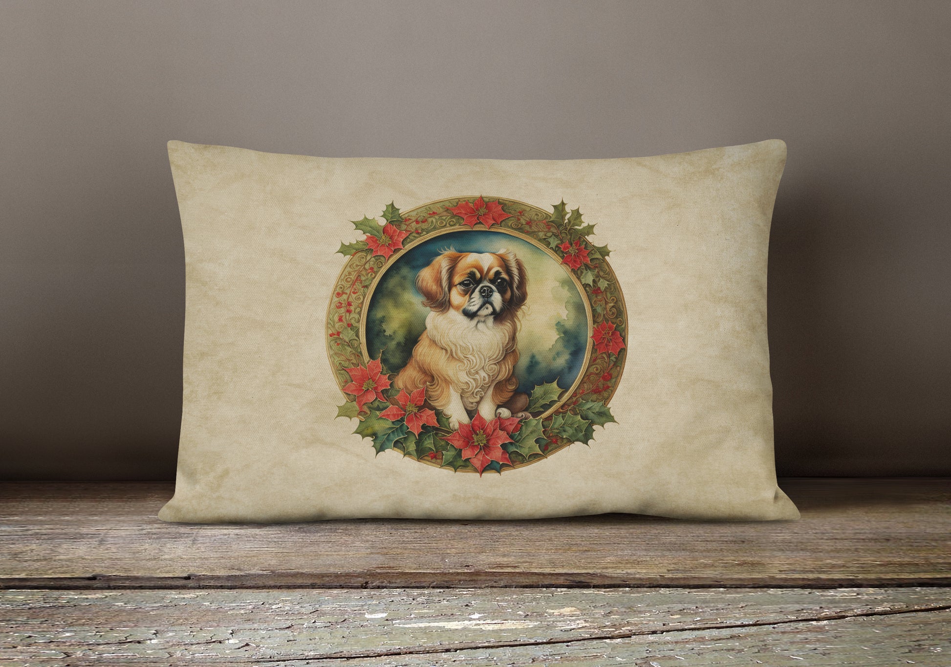 Throw Pillow featuring breed specific Tibetan Spaniel artwork. Celebrate Christmas with this Christmas Pillow. Embrace the fusion of comfort and style with Caroline's Treasures Fabric Decorative Pillow. This 12x16 inch outdoor pillow is designed to complement your patio furniture, adding a splash of color and artistry to your outdoor setting. Constructed with a 100% Polyester Fabric pillow sham filled with a plush pillow form, this cushion is as comfortable as it is durable. Our outdoor pillow utilizes a novel fabric, meticulously woven for enhanced water resistance. This soft canvas material is equally suited for your indoor couch as well as outdoor settings such as the patio, porch, or veranda. To ensure enduring vibrance, we employ colorfast dyes resistant to fading even when subjected to weather elements. The making of this pillow involves the delicate sewing together of three fabric pieces to create a sham, into which a polyester insert is carefully placed. The result is an overstuffed pillow that tenaciously holds its shape. With both the sham and the pillow insert crafted in the United States, these handmade pillows are a testament to superior local craftsmanship. Note that as these pillows are handmade, sizes may slightly vary, enhancing their unique appeal. Enjoy comfort in style with Caroline's Treasures Fabric Decorative Pillow.