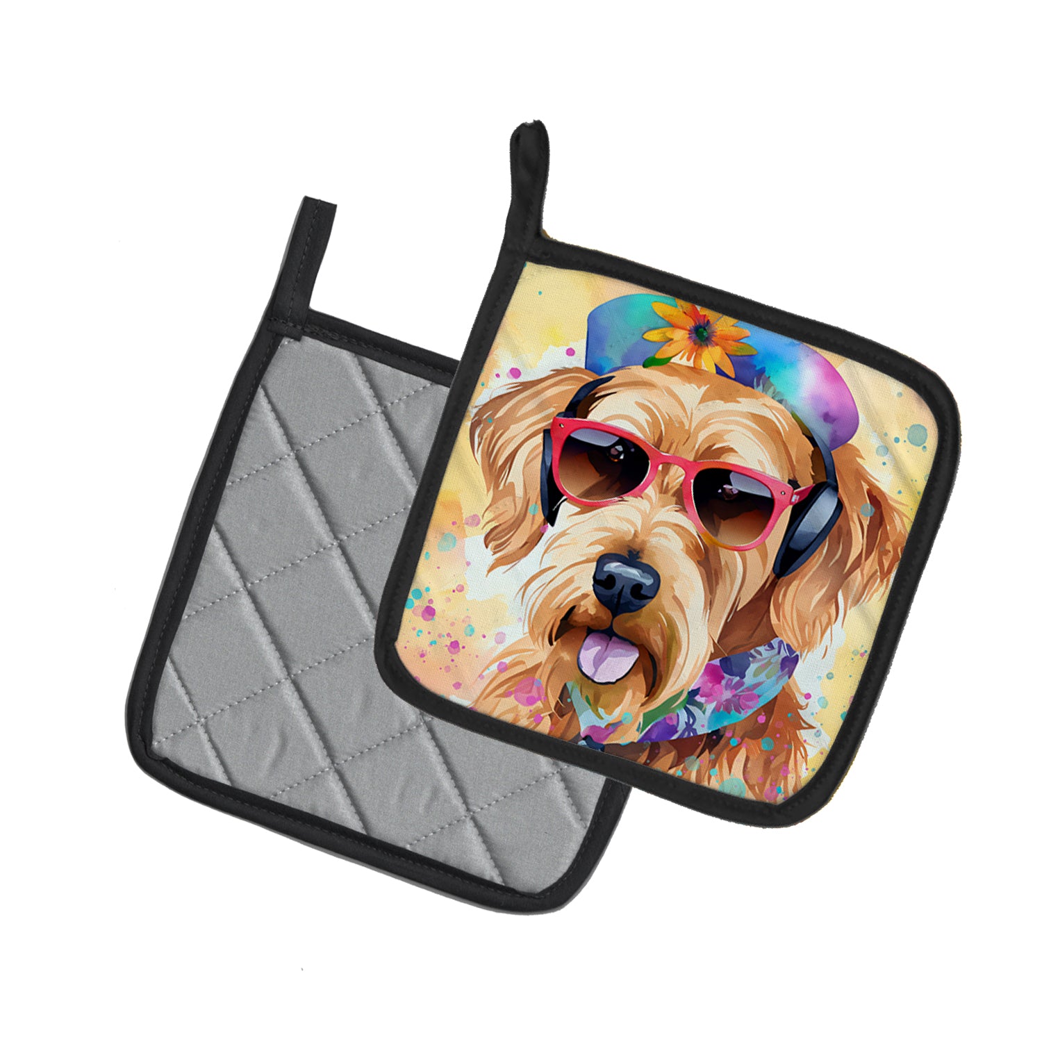 Airedale Terrier Hippie Dawg Pair of Pot Holders