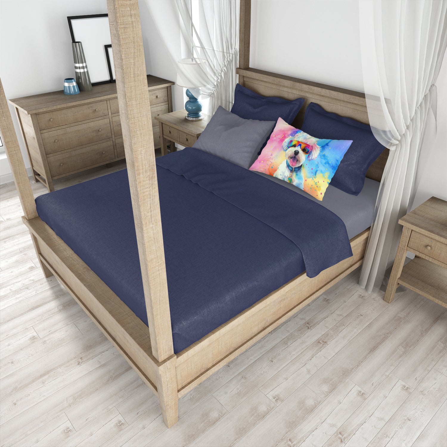 Standard Pillowcase featuring breed specific Bichon Frise artwork. Experience an upgrade in your sleeping comfort with our Fabric Standard Pillowcase, designed to balance style, comfort, and practicality. Showcasing vibrant artwork on the front and a standard white on the back, this pillowcase is more than a functional item—it's an expression of your personal style. Crafted from premium moisture-wicking material, our pillowcase ensures a pleasant sleeping experience. The breathable performance fabric allows for excellent air circulation, keeping you cool and comfortable throughout the night while also demonstrating exceptional quality. This pillowcase, measuring 30 x 20.5 inches with a slender 0.15 inch thickness, and weighing only 0.25 lbs, fits a standard pillow perfectly. Maintaining our pillowcase is hassle-free. It requires no ironing—simply wash in cold water and dry at medium heat. Bring art and luxury into your bedroom with our Fabric Standard Pillowcase. Its unique design and top-tier fabric contribute to a relaxing and rejuvenating sleep experience. Brighten your bedroom decor while enhancing your sleep with our high-performance pillowcase.