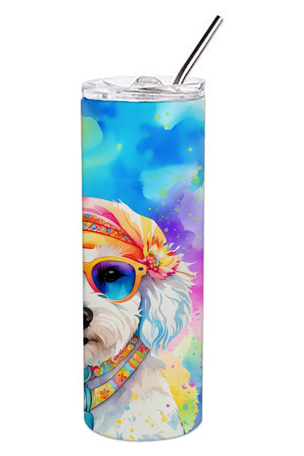 Bichon Frise Hippie Dawg Stainless Steel Skinny Tumbler