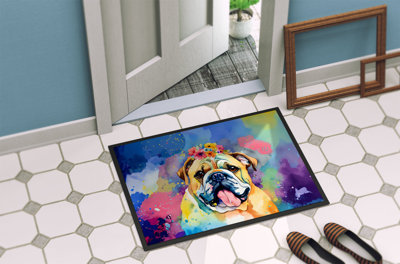 English Bulldog Hippie Dawg Doormat