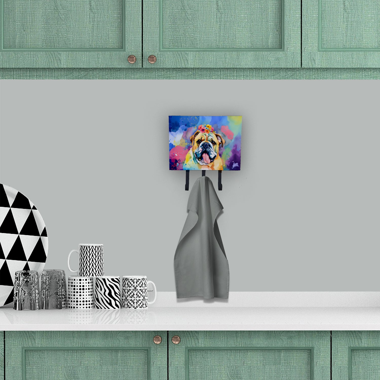 Leash or Key Holder featuring breed specific English Bulldog artwork. Transform your home or office's organization with the Caroline's Treasures Triple Leash or Key Holder. Offering versatility and style, this triple hook holder is perfect for holding keys, leashes, or just about any other small items you need to keep at hand. Crafted with a hardboard tile mounted to a metal rectangle, this holder's structure speaks of durability and reliability. Each hook hangs down about 2.5 inches from the base, providing ample space for hanging your essentials. Despite its robustness, this triple hook holder remains simple to install. It comes with a 1.5-inch long hanger attached to the metal plate, ensuring easy installation with a screw or paneling nail. This holder, measuring 6 x 2 x 9 inches and weighing only 1 lb, is a compact and lightweight solution to your storage needs. Ideal for home or office use, the Caroline's Treasures Triple Leash or Key Holder enhances organization while adding a touch of sophistication to your space.