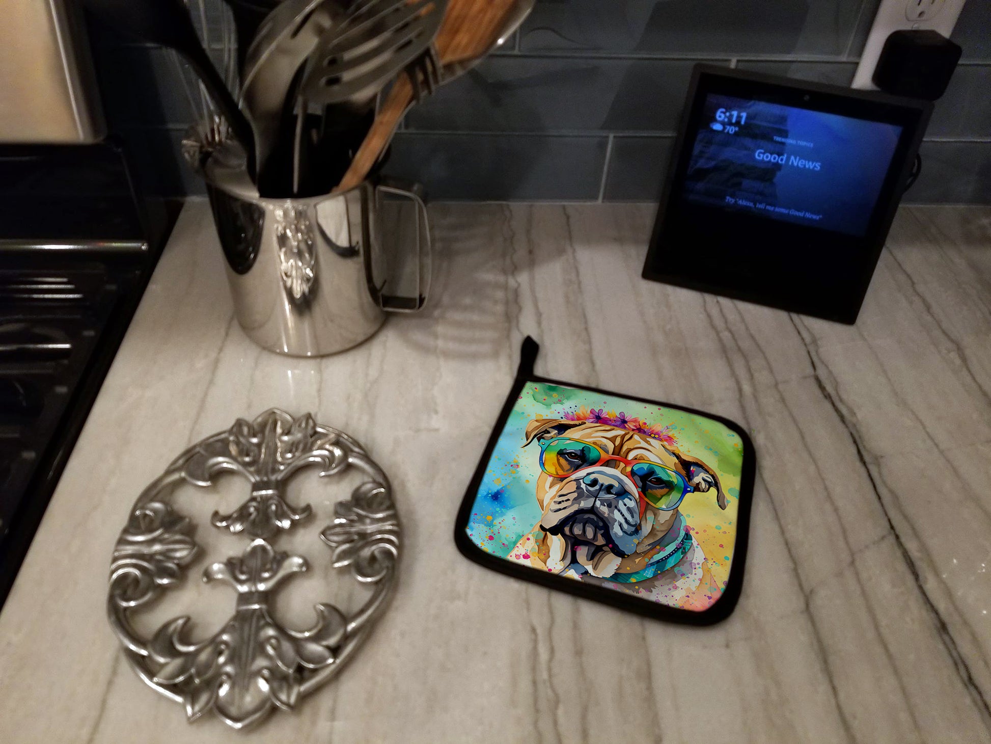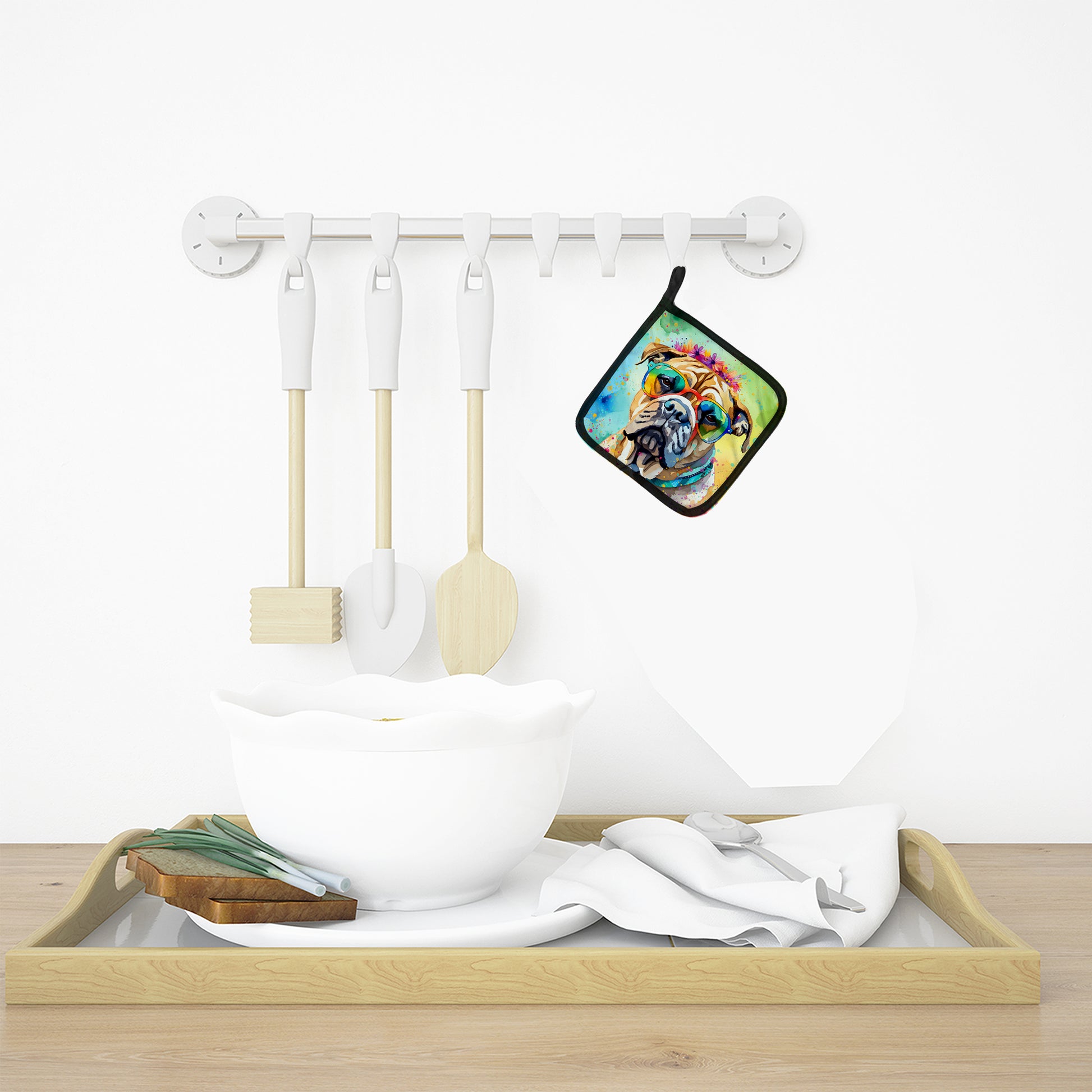Bullmastiff Hippie Dawg Pair of Pot Holders
