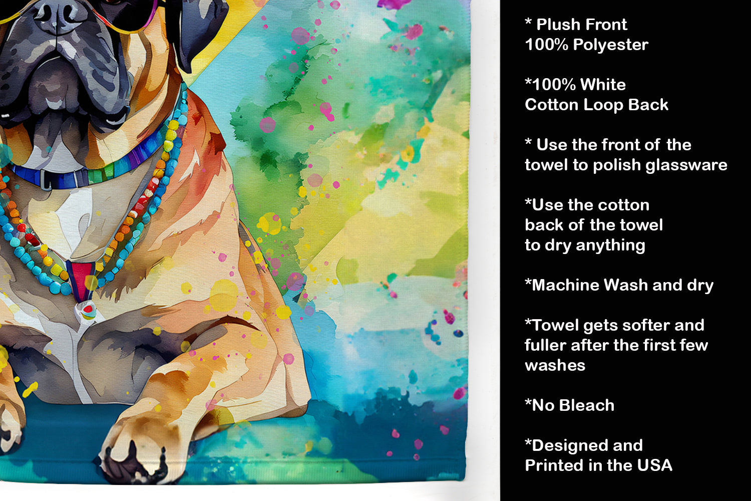 Kitchen Towel featuring breed specific Cane Corso artwork. Experience the perfect blend of aesthetic appeal and functional excellence with our Plush Velour Kitchen Towels. These are not your ordinary decorative kitchen towels that gather dust. Instead, they are designed to be as practical as they are stylish. The front layer of our towel is constructed from a minky plush polyester, known for its durability and color retention. Unlike conventional kitchen towels, the artwork on our towels is dyed directly into the fabric, ensuring vibrant colors that last. Polish your glassware to a brilliant sparkle using the plush front side of the towel. Flip to the back, crafted from 100% cotton terry loop, to exploit its exceptional absorbency for drying dishes or wiping down counters. Our kitchen towels redefine the concept of functional art, offering lasting quality that maintains the towel's shape over time. Measuring 15 inches by 25 inches and weighing 2.3 lbs per dozen, these towels deliver an overwhelming sensory experience with their soft, plush, and smooth texture. The edges are meticulously finished with binding, enhancing their durability and visual appeal. For your convenience, these towels are machine washable and can be dried on low heat. After the first wash, the top fabric becomes even softer and fluffier, eliminating the need for ironing. Treat your kitchen to the luxury and functionality it deserves with our plush velour kitchen towels.