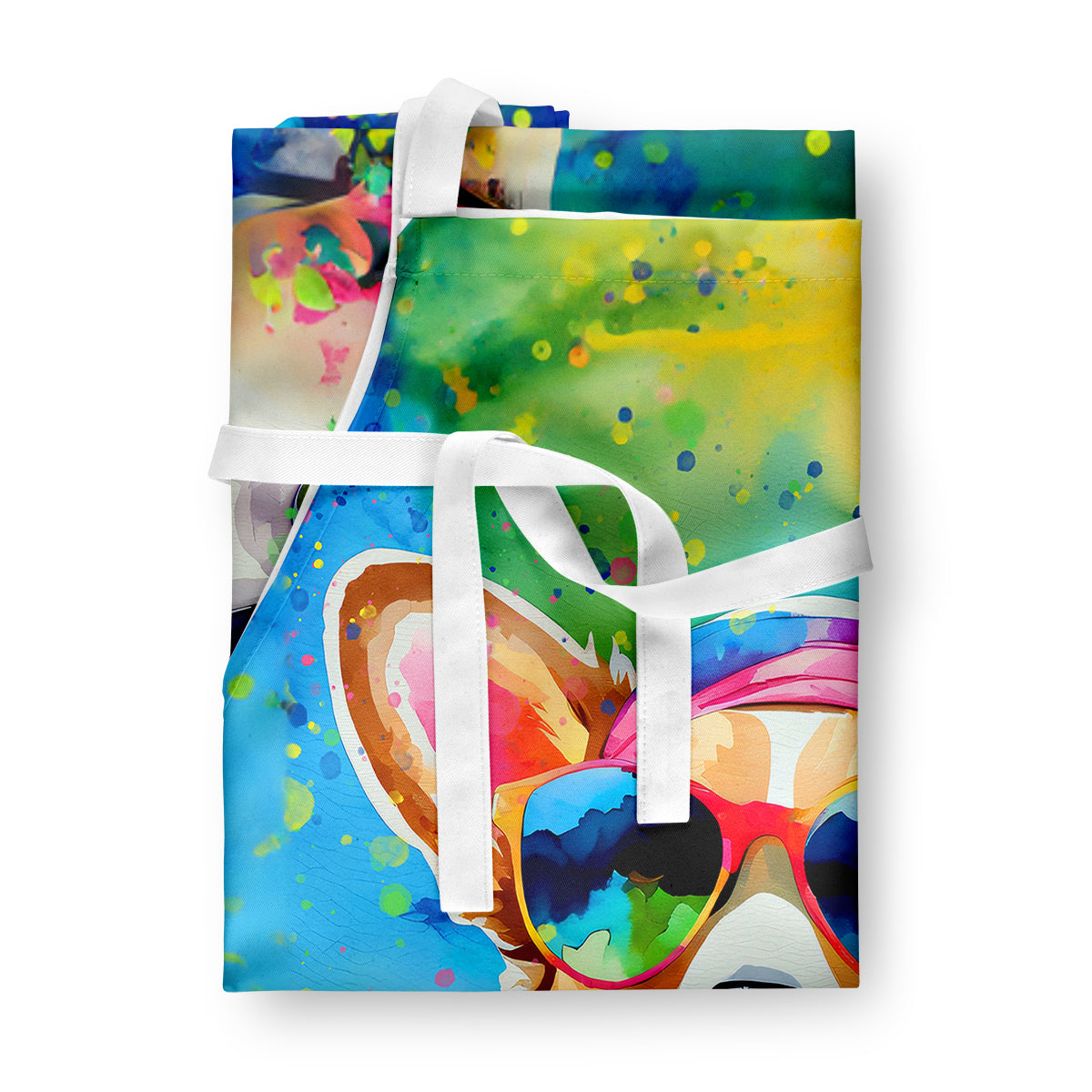 Apron featuring breed specific Corgi artwork. Elevate your cooking, baking, and grilling experiences with our versatile Kitchen or BBQ Apron. This Bib Style apron isn't just limited to culinary activities - it also serves as an excellent baking apron, artist apron, server apron, gardening apron, or even a dog grooming apron. The apron showcases vibrant full-color artwork contributed by one of our talented artists, bringing a dash of style to your daily tasks. With dimensions of approximately 27"W x 30"H, it provides ample coverage to protect your clothing from spills and splashes. Our apron is meticulously crafted from 100% Ultra Spun Polyester, known for its durability and lightweight nature. The apron comes with white tie straps, ensuring a comfortable and adjustable fit for all. It's a perfect choice for kitchen apron enthusiasts, whether you are a woman or a man. Designed for easy maintenance, this apron is fully machine washable. The quick-drying polyester material actively reduces staining, keeping your apron looking fresh and new for longer. Our beautifully designed apron isn't just a functional kitchen accessory - it's a fashion statement in the culinary world!