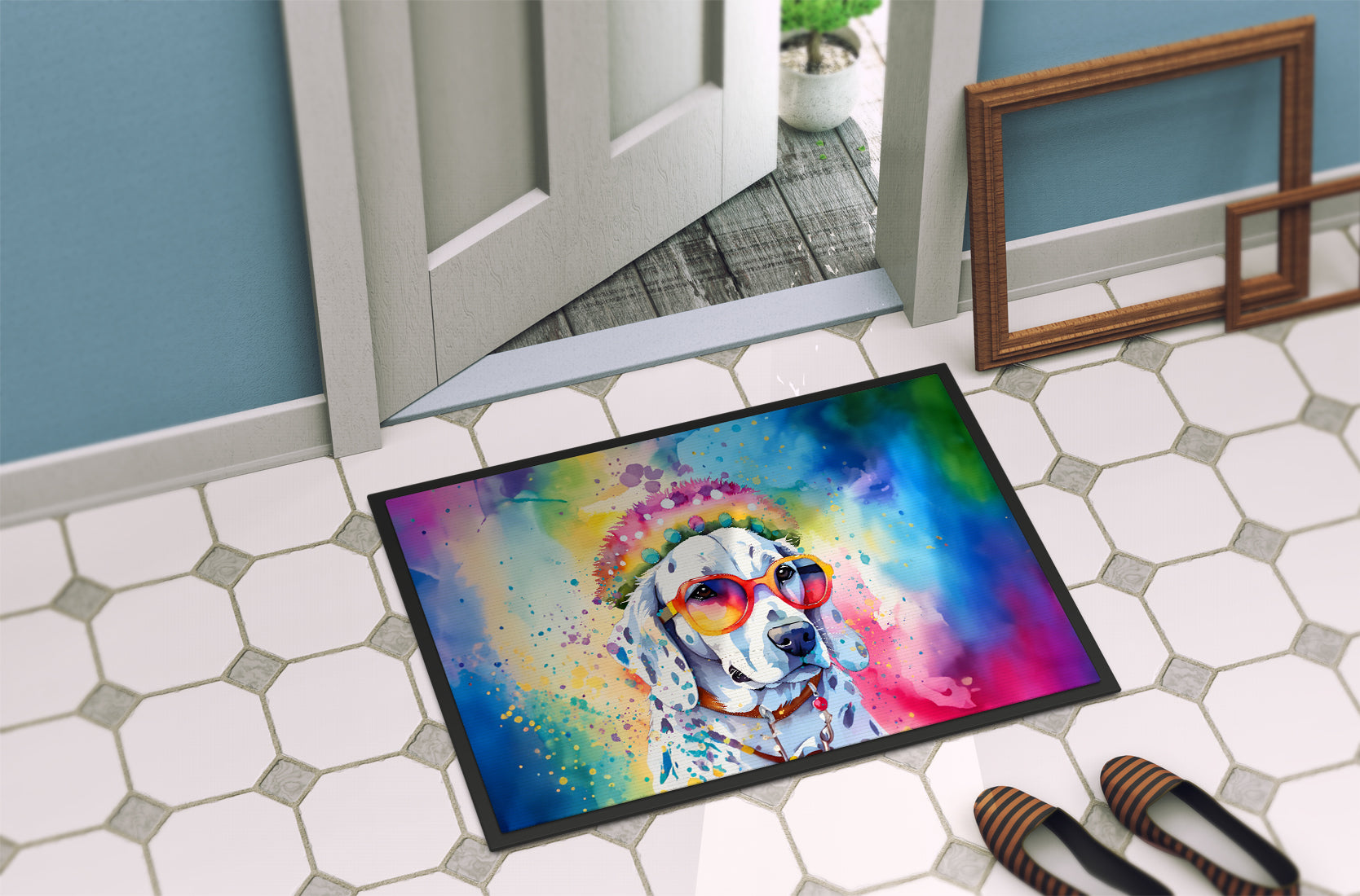 Doormat featuring breed specific Dalmatian artwork. Welcome your guests in style with our Artwork Door Mat, designed to withstand almost any weather condition. This mat, measuring approximately 24 by 36 inches, is held together by durable black binding tape. Its top layer, composed of polyester felt, is dyed with the eye-catching image you see on the mat. A few layers below provide the mat with stability, while its rubber bottom is stamped to help prevent slipping and ensures safety. Our mat works wonderfully as both an indoor or outdoor door mat. For cleaning, simply hose it off with water or use a power washer - no need for any cleaner that produces suds. Avoid scrubbing with a brush, instead, opt for the vacuum on floor setting. Designed manufactured and printed in the USA, this mat is a perfect addition to your porch, outdoor kitchen, entryway, or any indoor space. Its unique design makes it a charming decorative rug that greets your guests and adds a stylish touch to your home decor.