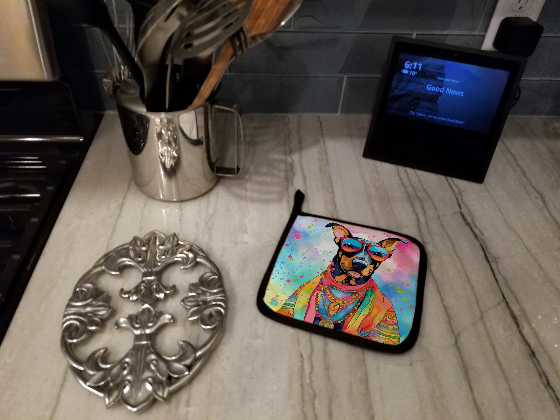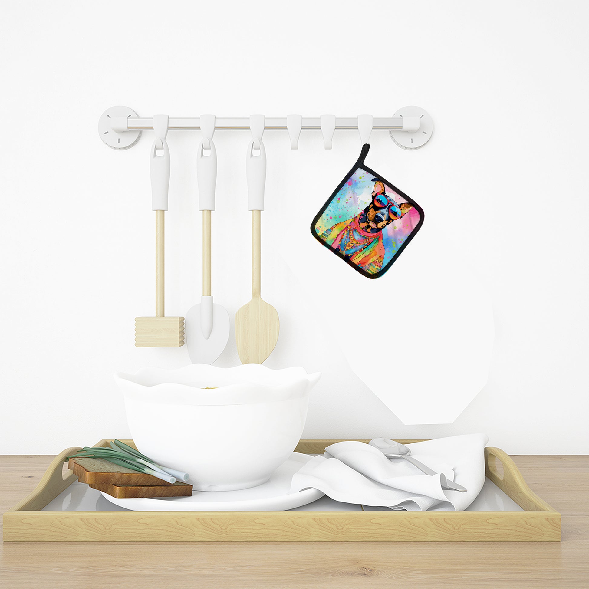 Doberman Pinscher Hippie Dawg Pair of Pot Holders