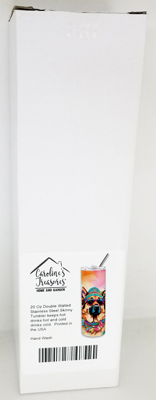 Stainless Steel Skinny Tumbler featuring breed specific German Shepherd artwork. Elevate your hydration experience with our Decorative Stainless Steel 20 oz Skinny Tumbler from Caroline's Treasures. This vacuum-insulated, double-walled travel mug is designed to keep your beverages hot or cold for prolonged periods, making it perfect for your coffee, tea, or cocktails. Its sleek and easy-to-grasp design, complemented by the vibrant, top-to-bottom artwork, makes it a stylish accessory for both men and women. Equipped with a secure, slide-open lid, you can enjoy your drinks without worrying about spills, while the included reusable metal straw contributes to reducing plastic use and promoting sustainability. Crafted with quality stainless steel, the tumbler is 100% BPA and Phthalate free, ensuring a safe, non-toxic experience with every sip. Not just functional, this skinny tumbler, complete with gift box, serves as a thoughtful gift for women, mothers, or any loved one. Enjoy your favorite beverages on the go in style, while making a positive impact on the environment. Remember, it's not just a drinkware, it's a lifestyle accessory! Please note: For optimum longevity, hand washing is recommended.