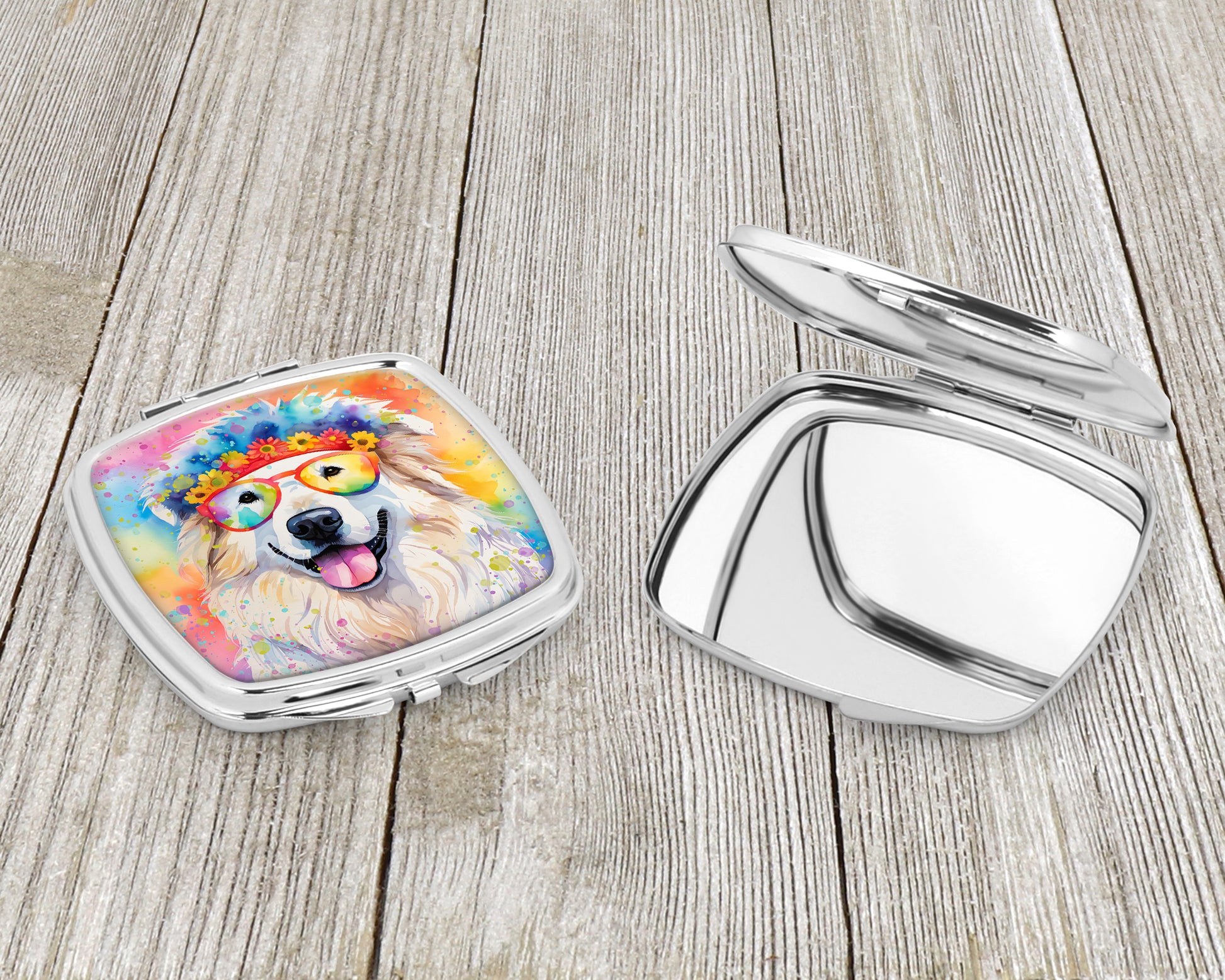Compact Mirror featuring breed specific Great Pyrenees artwork. Introducing our Square Compact Mirror, a blend of elegance, functionality, and compactness, perfect for on-the-go touch-ups. This Silvertone metal mirror, with dimensions of 2.75 inches x 3 inches x .3 inches, fits effortlessly into your purse, handbag, or pocket, ensuring that you can check your appearance anytime, anywhere. Our compact mirror stands out with its eye-catching artwork on the front, adding a dash of style to this practical accessory. It is more than just a mirror; it's a statement piece that reflects your personality and aesthetic. When opened, this compact reveals two mirrors inside, doubling your perspective for precise touch-ups. The Silvertone metal construction ensures durability while maintaining a lightweight feel, making it an ideal everyday carry item. Whether you're rushing to a meeting, prepping for a dinner date, or just need a quick check on your look, our Square Compact Mirror is your reliable companion. Experience the perfect blend of style and practicality with this must-have accessory.