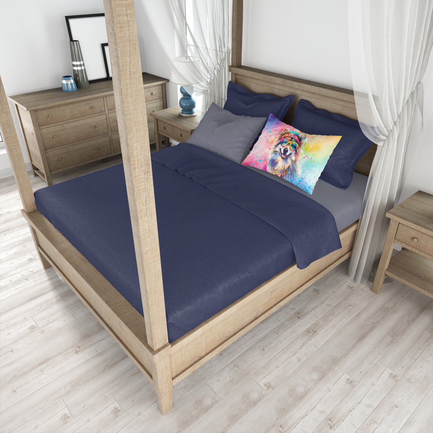Standard Pillowcase featuring breed specific Keeshond artwork. Experience an upgrade in your sleeping comfort with our Fabric Standard Pillowcase, designed to balance style, comfort, and practicality. Showcasing vibrant artwork on the front and a standard white on the back, this pillowcase is more than a functional item—it's an expression of your personal style. Crafted from premium moisture-wicking material, our pillowcase ensures a pleasant sleeping experience. The breathable performance fabric allows for excellent air circulation, keeping you cool and comfortable throughout the night while also demonstrating exceptional quality. This pillowcase, measuring 30 x 20.5 inches with a slender 0.15 inch thickness, and weighing only 0.25 lbs, fits a standard pillow perfectly. Maintaining our pillowcase is hassle-free. It requires no ironing—simply wash in cold water and dry at medium heat. Bring art and luxury into your bedroom with our Fabric Standard Pillowcase. Its unique design and top-tier fabric contribute to a relaxing and rejuvenating sleep experience. Brighten your bedroom decor while enhancing your sleep with our high-performance pillowcase.