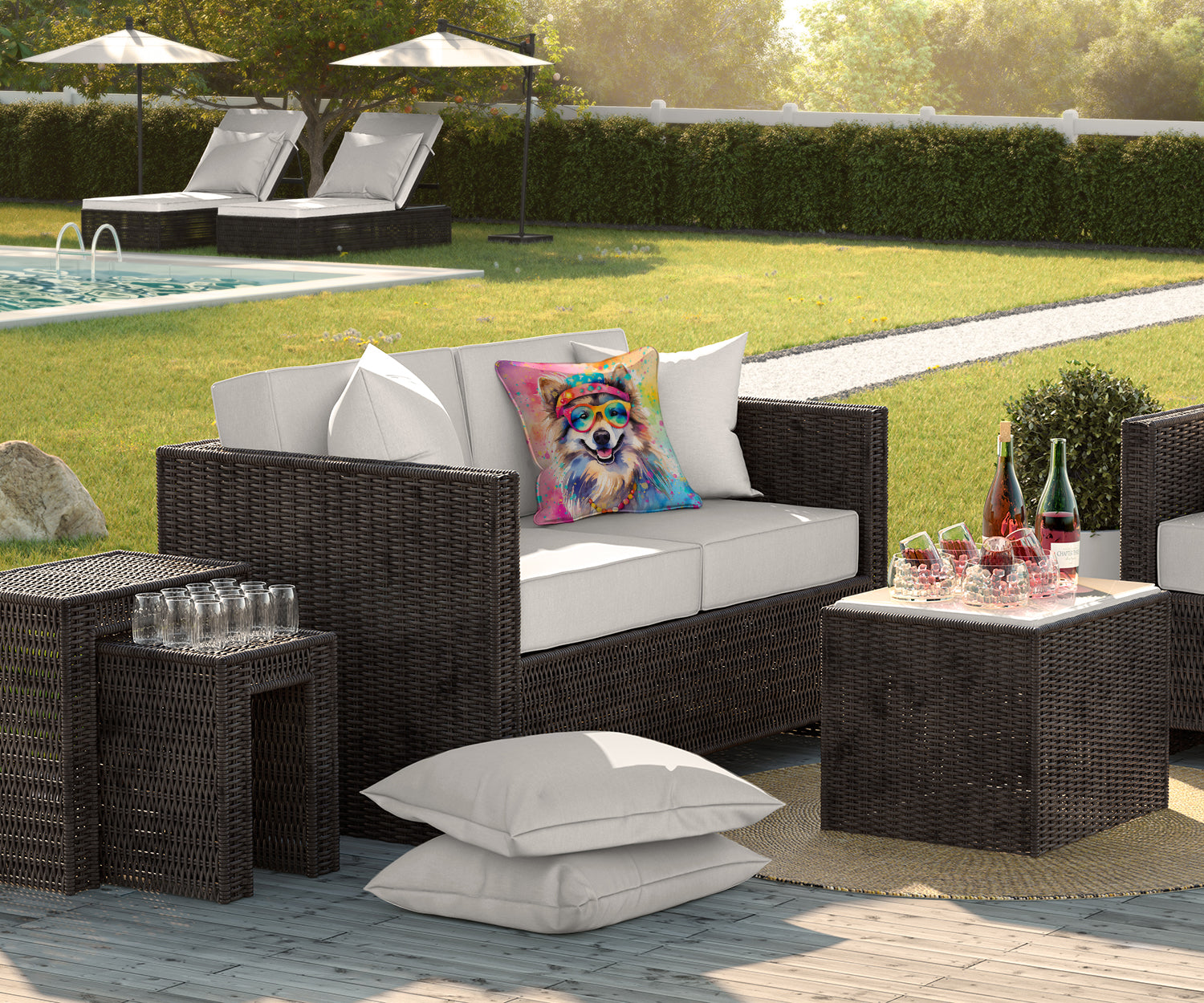 Keeshond Hippie Dawg Throw Pillow