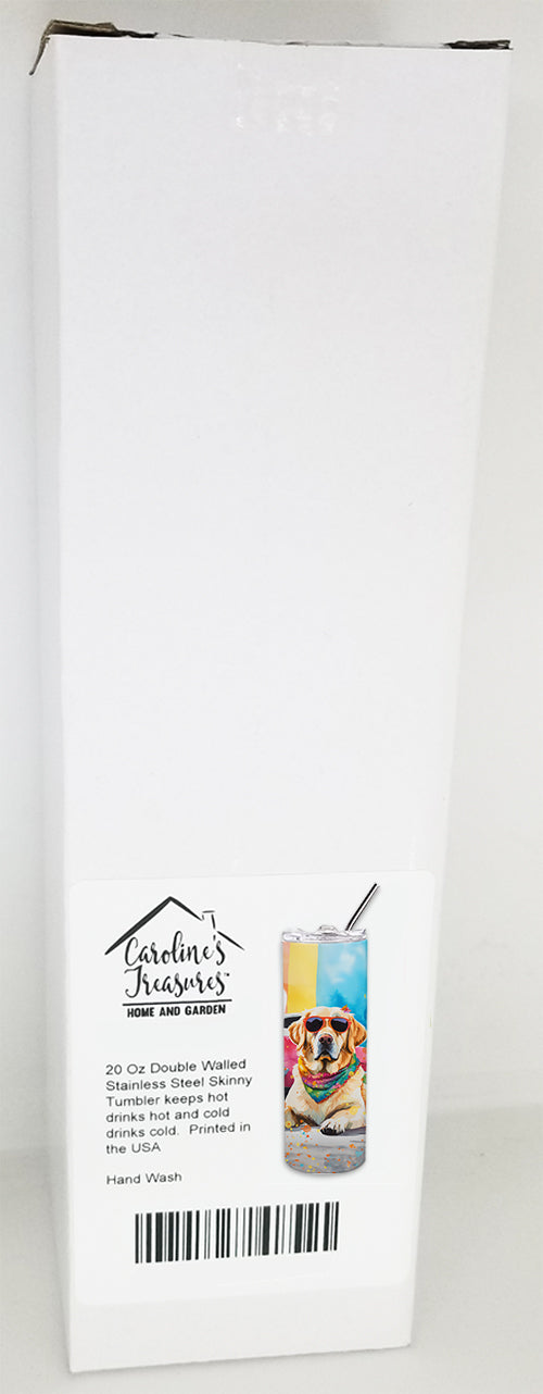 Stainless Steel Skinny Tumbler featuring breed specific Yellow Labrador artwork. Elevate your hydration experience with our Decorative Stainless Steel 20 oz Skinny Tumbler from Caroline's Treasures. This vacuum-insulated, double-walled travel mug is designed to keep your beverages hot or cold for prolonged periods, making it perfect for your coffee, tea, or cocktails. Its sleek and easy-to-grasp design, complemented by the vibrant, top-to-bottom artwork, makes it a stylish accessory for both men and women. Equipped with a secure, slide-open lid, you can enjoy your drinks without worrying about spills, while the included reusable metal straw contributes to reducing plastic use and promoting sustainability. Crafted with quality stainless steel, the tumbler is 100% BPA and Phthalate free, ensuring a safe, non-toxic experience with every sip. Not just functional, this skinny tumbler, complete with gift box, serves as a thoughtful gift for women, mothers, or any loved one. Enjoy your favorite beverages on the go in style, while making a positive impact on the environment. Remember, it's not just a drinkware, it's a lifestyle accessory! Please note: For optimum longevity, hand washing is recommended.