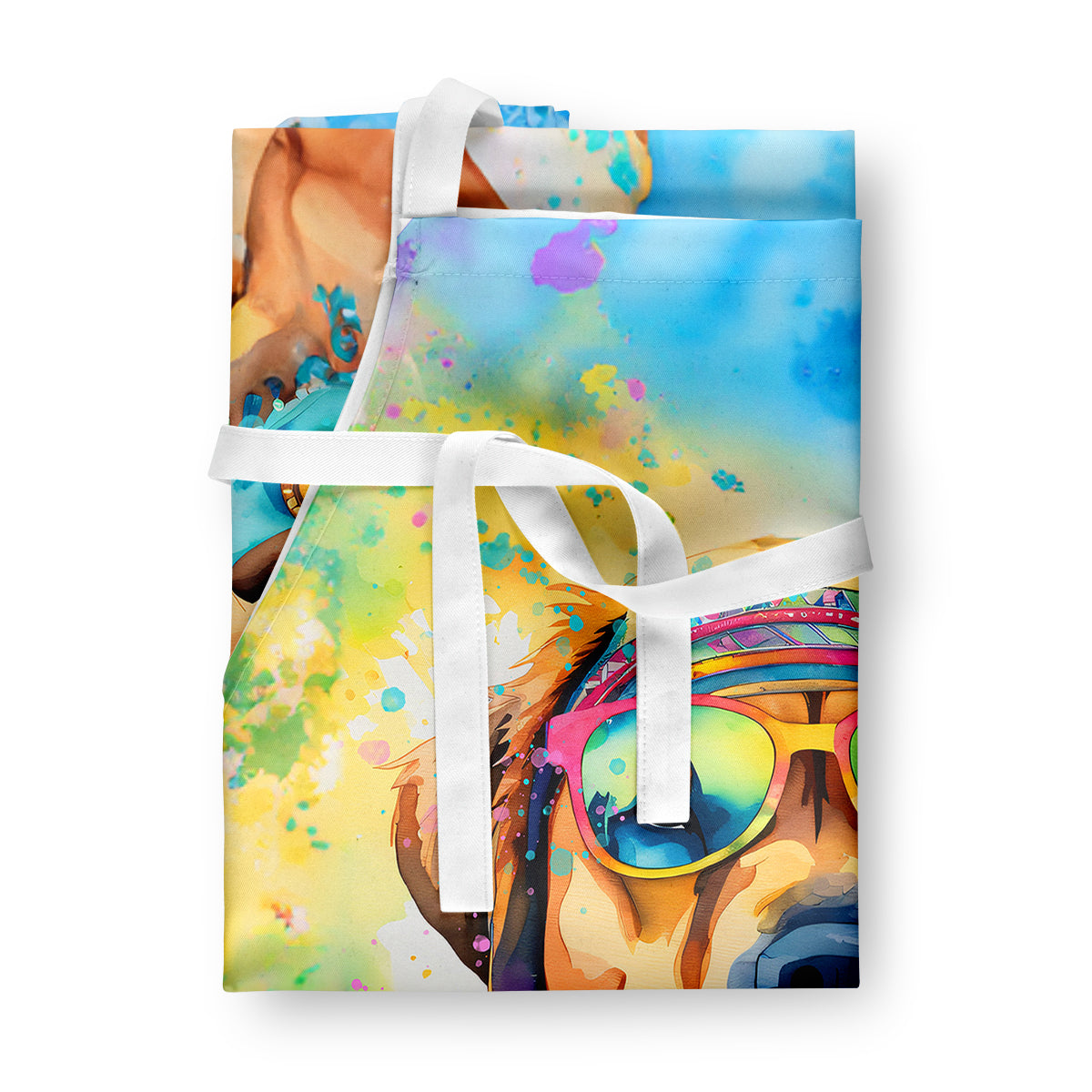 Apron featuring breed specific Mastiff artwork. Elevate your cooking, baking, and grilling experiences with our versatile Kitchen or BBQ Apron. This Bib Style apron isn't just limited to culinary activities - it also serves as an excellent baking apron, artist apron, server apron, gardening apron, or even a dog grooming apron. The apron showcases vibrant full-color artwork contributed by one of our talented artists, bringing a dash of style to your daily tasks. With dimensions of approximately 27"W x 30"H, it provides ample coverage to protect your clothing from spills and splashes. Our apron is meticulously crafted from 100% Ultra Spun Polyester, known for its durability and lightweight nature. The apron comes with white tie straps, ensuring a comfortable and adjustable fit for all. It's a perfect choice for kitchen apron enthusiasts, whether you are a woman or a man. Designed for easy maintenance, this apron is fully machine washable. The quick-drying polyester material actively reduces staining, keeping your apron looking fresh and new for longer. Our beautifully designed apron isn't just a functional kitchen accessory - it's a fashion statement in the culinary world!