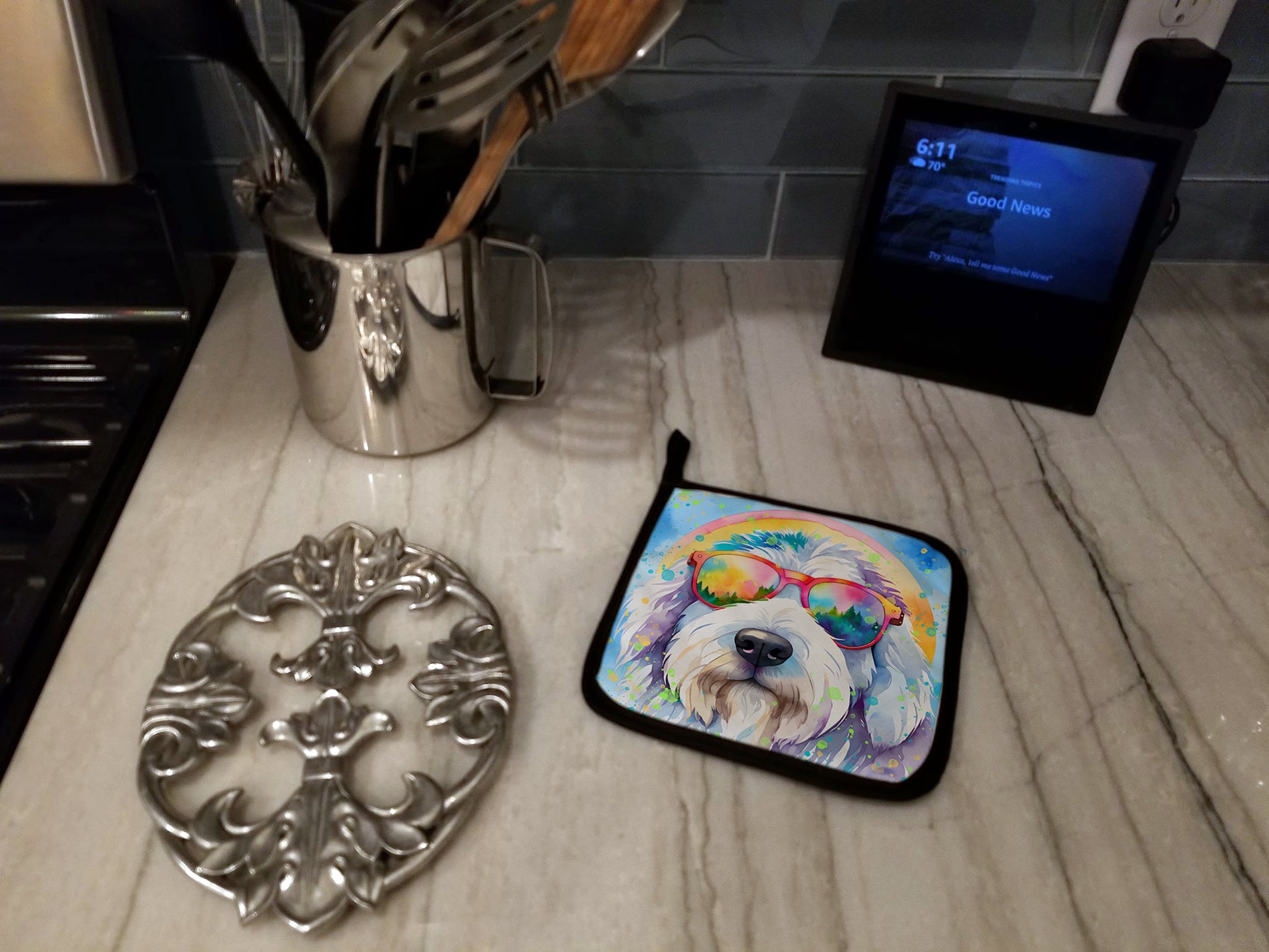 Old English Sheepdog Hippie Dawg Pair of Pot Holders