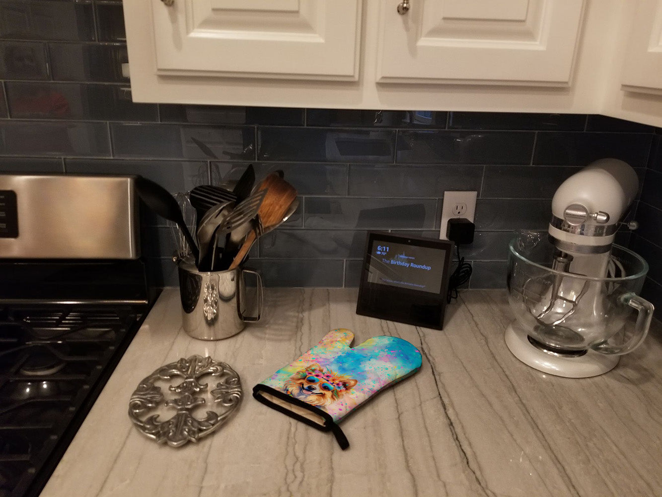 Pomeranian Hippie Dawg Oven Mitt
