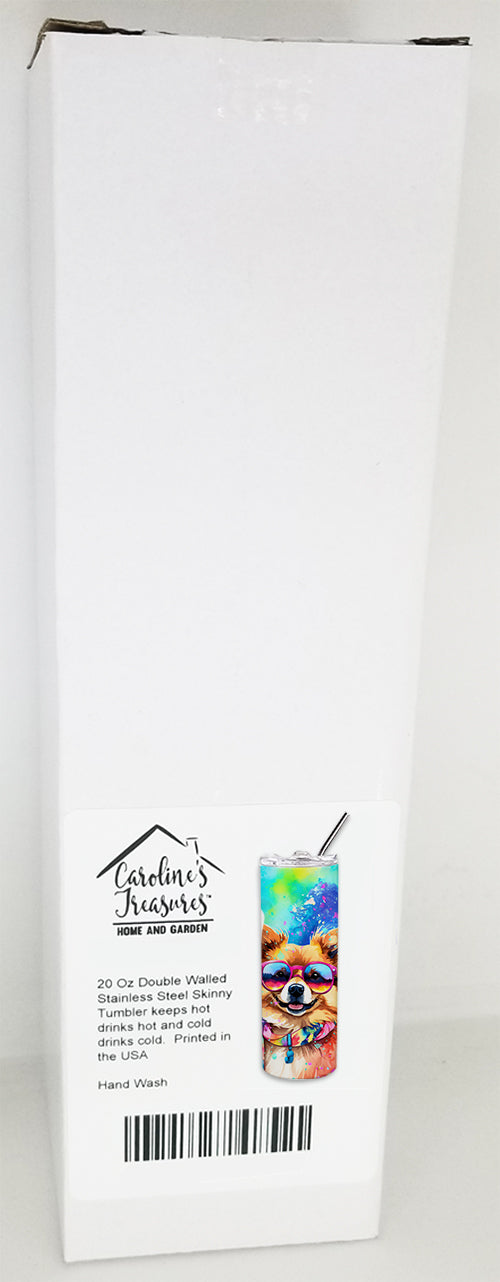 Stainless Steel Skinny Tumbler featuring breed specific Pomeranian artwork. Elevate your hydration experience with our Decorative Stainless Steel 20 oz Skinny Tumbler from Caroline's Treasures. This vacuum-insulated, double-walled travel mug is designed to keep your beverages hot or cold for prolonged periods, making it perfect for your coffee, tea, or cocktails. Its sleek and easy-to-grasp design, complemented by the vibrant, top-to-bottom artwork, makes it a stylish accessory for both men and women. Equipped with a secure, slide-open lid, you can enjoy your drinks without worrying about spills, while the included reusable metal straw contributes to reducing plastic use and promoting sustainability. Crafted with quality stainless steel, the tumbler is 100% BPA and Phthalate free, ensuring a safe, non-toxic experience with every sip. Not just functional, this skinny tumbler, complete with gift box, serves as a thoughtful gift for women, mothers, or any loved one. Enjoy your favorite beverages on the go in style, while making a positive impact on the environment. Remember, it's not just a drinkware, it's a lifestyle accessory! Please note: For optimum longevity, hand washing is recommended.
