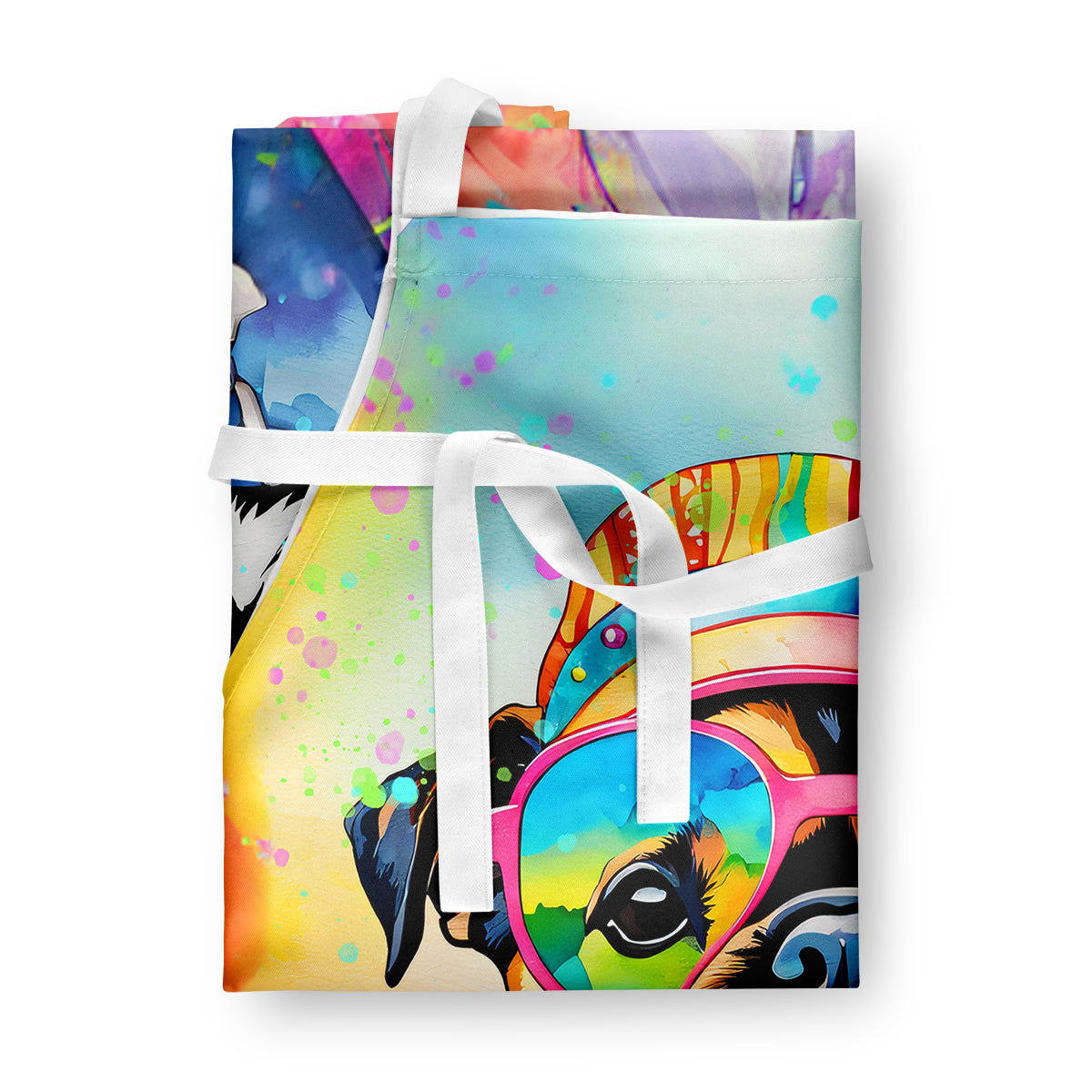 Apron featuring breed specific Pug artwork. Elevate your cooking, baking, and grilling experiences with our versatile Kitchen or BBQ Apron. This Bib Style apron isn't just limited to culinary activities - it also serves as an excellent baking apron, artist apron, server apron, gardening apron, or even a dog grooming apron. The apron showcases vibrant full-color artwork contributed by one of our talented artists, bringing a dash of style to your daily tasks. With dimensions of approximately 27"W x 30"H, it provides ample coverage to protect your clothing from spills and splashes. Our apron is meticulously crafted from 100% Ultra Spun Polyester, known for its durability and lightweight nature. The apron comes with white tie straps, ensuring a comfortable and adjustable fit for all. It's a perfect choice for kitchen apron enthusiasts, whether you are a woman or a man. Designed for easy maintenance, this apron is fully machine washable. The quick-drying polyester material actively reduces staining, keeping your apron looking fresh and new for longer. Our beautifully designed apron isn't just a functional kitchen accessory - it's a fashion statement in the culinary world!