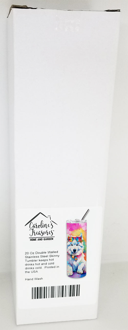 Stainless Steel Skinny Tumbler featuring breed specific Samoyed artwork. Elevate your hydration experience with our Decorative Stainless Steel 20 oz Skinny Tumbler from Caroline's Treasures. This vacuum-insulated, double-walled travel mug is designed to keep your beverages hot or cold for prolonged periods, making it perfect for your coffee, tea, or cocktails. Its sleek and easy-to-grasp design, complemented by the vibrant, top-to-bottom artwork, makes it a stylish accessory for both men and women. Equipped with a secure, slide-open lid, you can enjoy your drinks without worrying about spills, while the included reusable metal straw contributes to reducing plastic use and promoting sustainability. Crafted with quality stainless steel, the tumbler is 100% BPA and Phthalate free, ensuring a safe, non-toxic experience with every sip. Not just functional, this skinny tumbler, complete with gift box, serves as a thoughtful gift for women, mothers, or any loved one. Enjoy your favorite beverages on the go in style, while making a positive impact on the environment. Remember, it's not just a drinkware, it's a lifestyle accessory! Please note: For optimum longevity, hand washing is recommended.