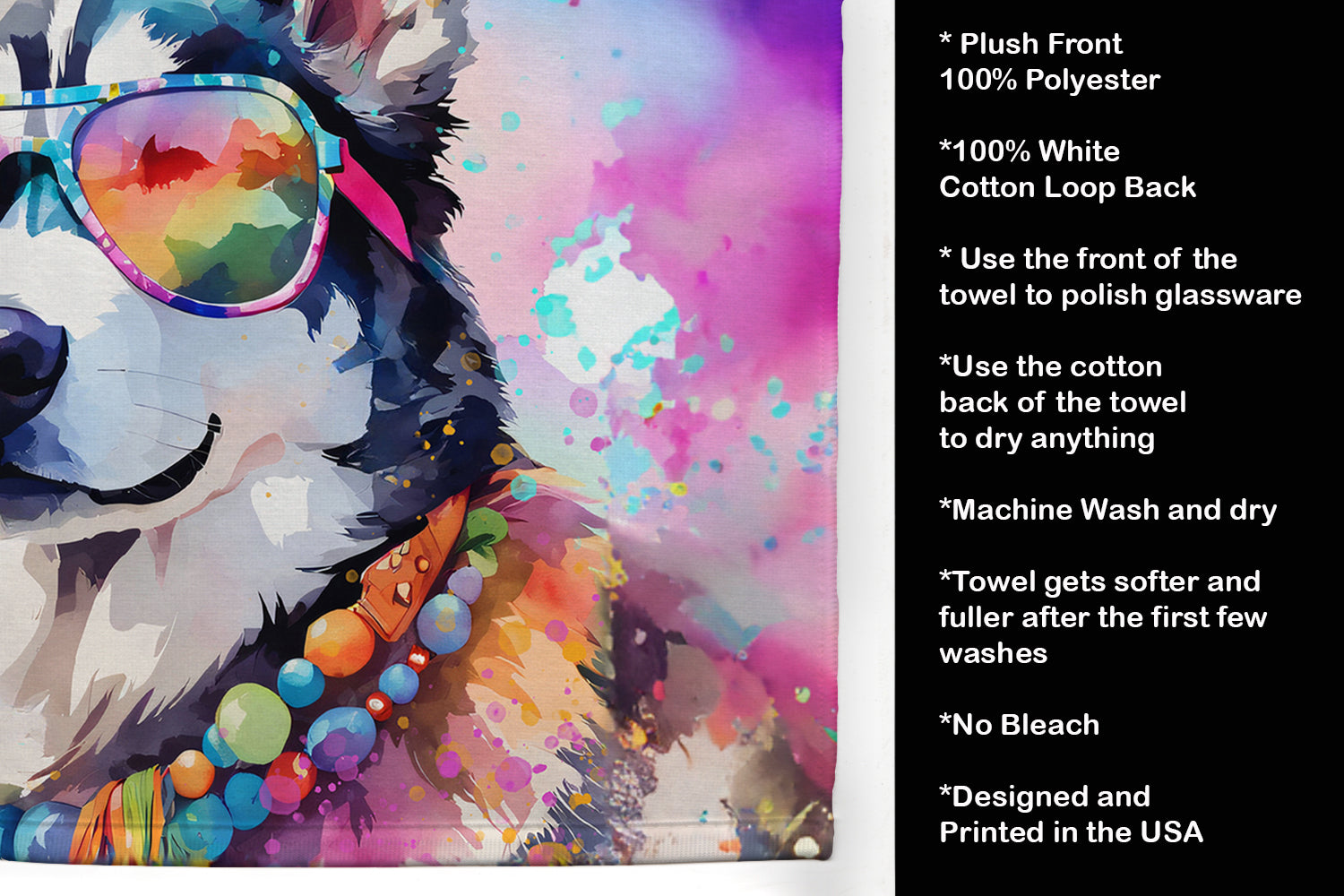 Kitchen Towel featuring breed specific Siberian Husky artwork. Experience the perfect blend of aesthetic appeal and functional excellence with our Plush Velour Kitchen Towels. These are not your ordinary decorative kitchen towels that gather dust. Instead, they are designed to be as practical as they are stylish. The front layer of our towel is constructed from a minky plush polyester, known for its durability and color retention. Unlike conventional kitchen towels, the artwork on our towels is dyed directly into the fabric, ensuring vibrant colors that last. Polish your glassware to a brilliant sparkle using the plush front side of the towel. Flip to the back, crafted from 100% cotton terry loop, to exploit its exceptional absorbency for drying dishes or wiping down counters. Our kitchen towels redefine the concept of functional art, offering lasting quality that maintains the towel's shape over time. Measuring 15 inches by 25 inches and weighing 2.3 lbs per dozen, these towels deliver an overwhelming sensory experience with their soft, plush, and smooth texture. The edges are meticulously finished with binding, enhancing their durability and visual appeal. For your convenience, these towels are machine washable and can be dried on low heat. After the first wash, the top fabric becomes even softer and fluffier, eliminating the need for ironing. Treat your kitchen to the luxury and functionality it deserves with our plush velour kitchen towels.