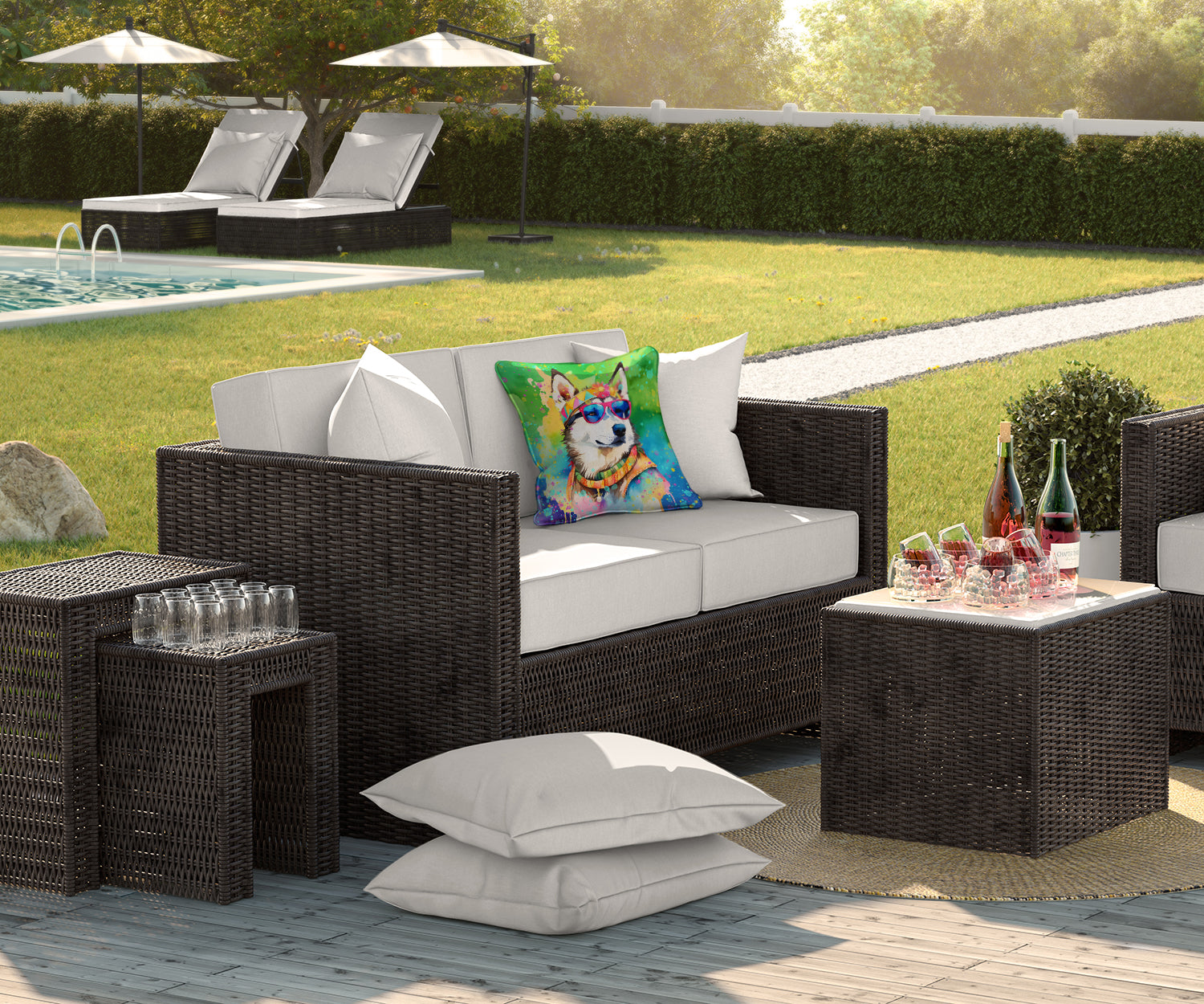 Throw Pillow featuring breed specific Siberian Husky artwork. Revitalize your outdoor or indoor living space with Caroline's Treasures 18x18 Fabric Decorative Pillow. With a generously sized dimension of approximately 18 inches by 18 inches, this pillow makes a comfortable and aesthetic addition to any seating area. Made from a unique, water-resistant material developed by Caroline's Treasures, the pillow sham is 100% polyester fabric that's durable and ready to weather any condition. Its vibrant, full-color artwork will not fade over time as it is dyed with color-fast dyes. Whether you place it on your patio furniture, porch, veranda, or indoor couch, its soft canvas fabric ensures a cozy experience. The pillow is handcrafted in the United States, featuring a sham created from three pieces of fabric and a polyester insert for enduring shape and overstuffed comfort. Despite being robustly built to endure the outdoors, it is as soft and snug as your favorite indoor cushions. Please note, as all our pillows are handmade, sizes may vary slightly, adding to the charm of this unique decorative item.