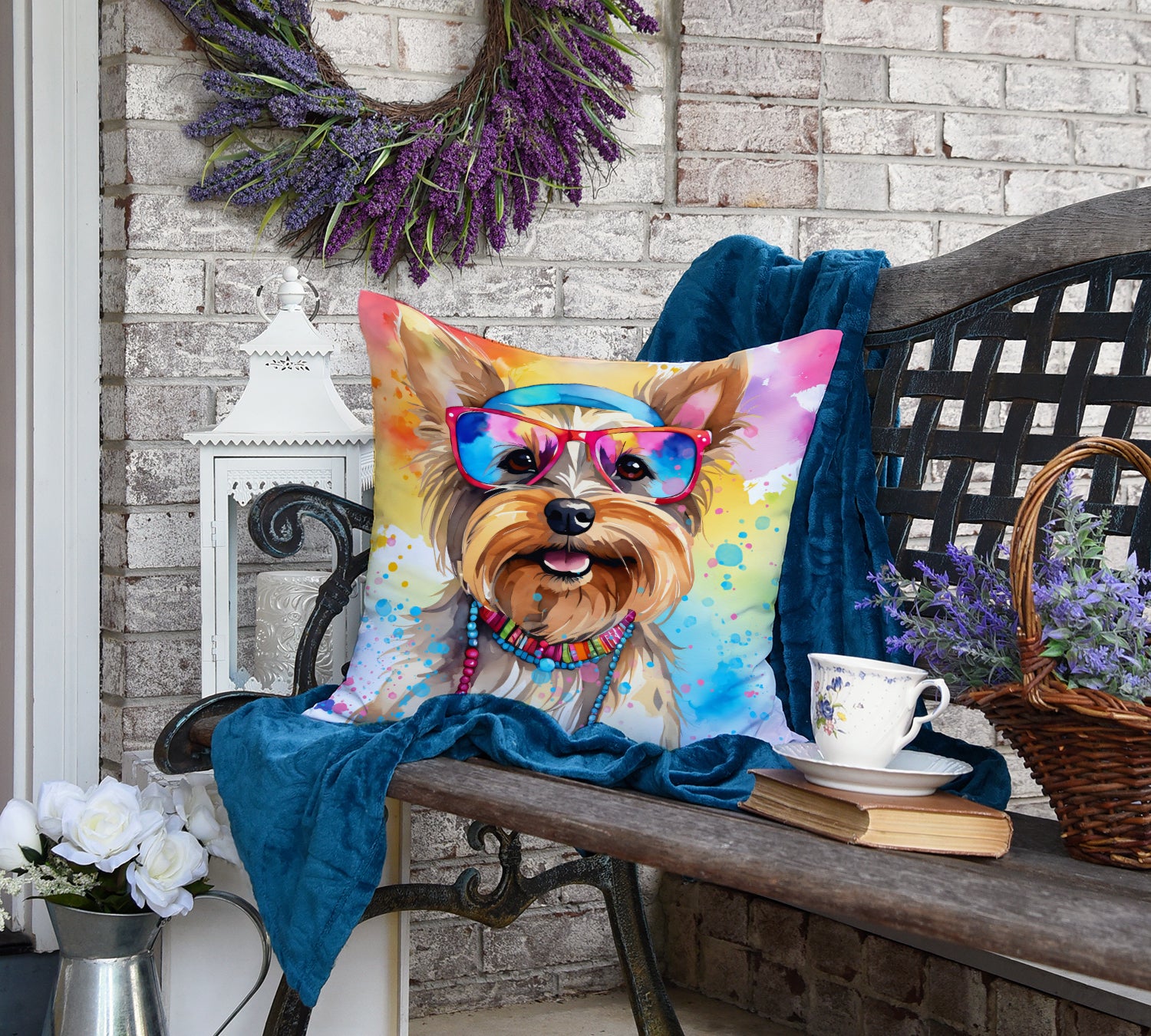 Yorkshire Terrier Hippie Dawg Throw Pillow