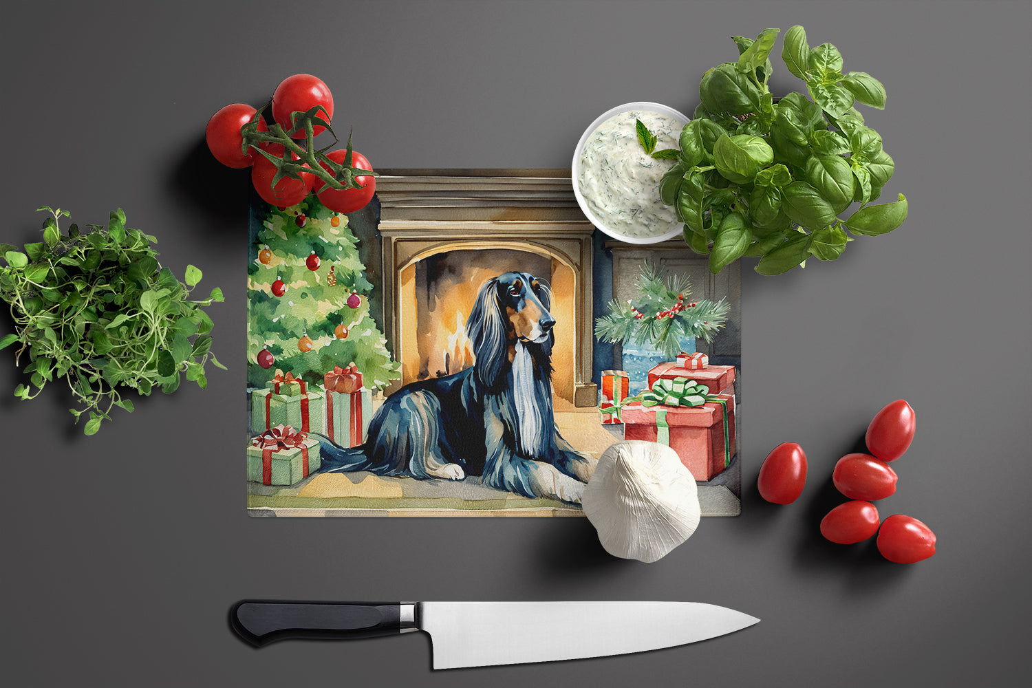 Afghan Hound Cozy Christmas Glass Cutting Board