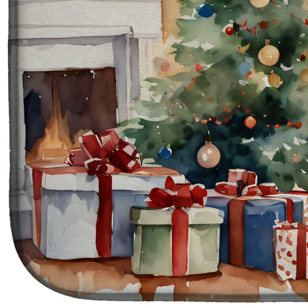 Dish Drying Mat featuring breed specific American English Coonhound artwork. Celebrate Christmas with this Christmas Dish Drying Mat. Say goodbye to messy countertops and soggy dish towels with our innovative dish drying mat. Our high-quality dish drying pad is designed to keep your countertops dry while offering a stylish and efficient solution. Whether you're air drying dishes, glasses, stemware, silverware, pots, pans, bottles, or even fruits and vegetables, our dish mat is the perfect choice. The 14 inches x 22 inches size fits most counters and dish drying racks, and the non-slip design ensures stability. Made with water-absorbent polyester and a polyurethane foam insert, our dish drying mat is not only functional but also durable. It's machine washable and printed in the USA for long-lasting use. The beautiful artwork adds flair to your kitchen decor, making it a perfect housewarming gift or present for any occasion. Upgrade your kitchen experience with our absorbent and versatile dish drying mat.