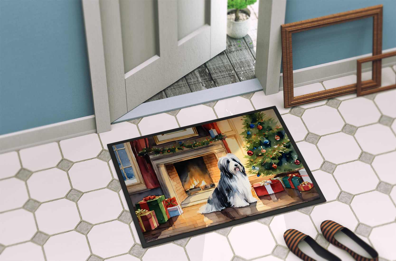 Doormat featuring breed specific Bearded Collie artwork. Celebrate Christmas with this Christmas Doormat. Welcome your guests in style with our Artwork Door Mat, designed to withstand almost any weather condition. This mat, measuring approximately 18 by 27 inches, is held together by durable black binding tape. Its top layer, composed of polyester felt, is dyed with the eye-catching image you see on the mat. A few layers below provide the mat with stability, while its rubber bottom is stamped to help prevent slipping and ensures safety. Our mat works wonderfully as both an indoor or outdoor door mat. For cleaning, simply hose it off with water or use a power washer - no need for any cleaner that produces suds. Avoid scrubbing with a brush, instead, opt for the vacuum on floor setting. Designed manufactured and printed in the USA, this mat is a perfect addition to your porch, outdoor kitchen, entryway, or any indoor space. Its unique design makes it a charming decorative rug that greets your guests and adds a stylish touch to your home decor.