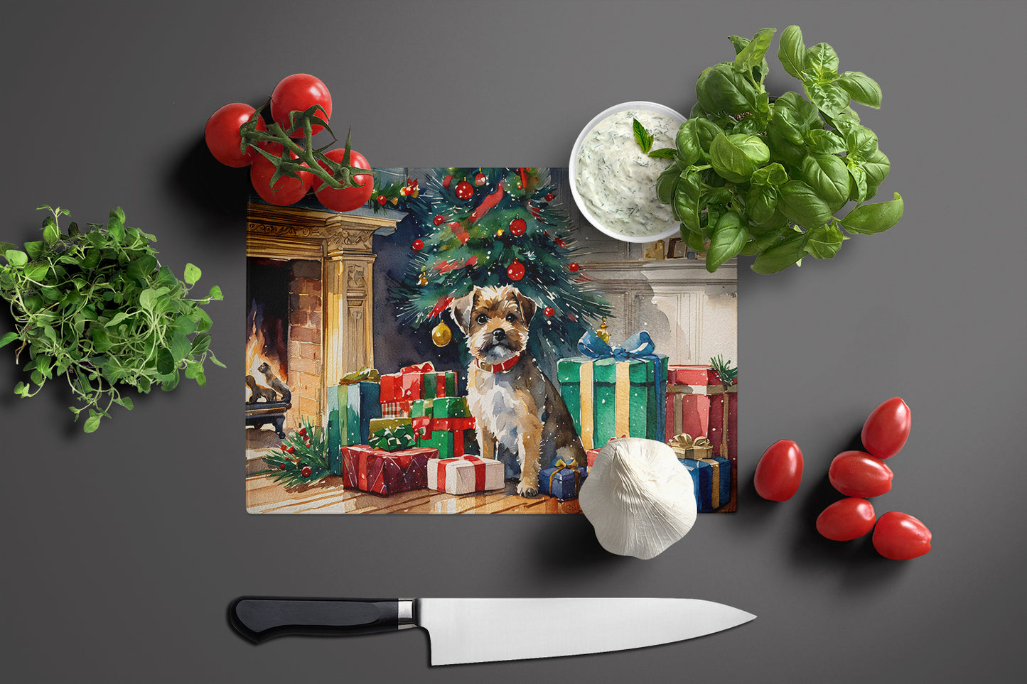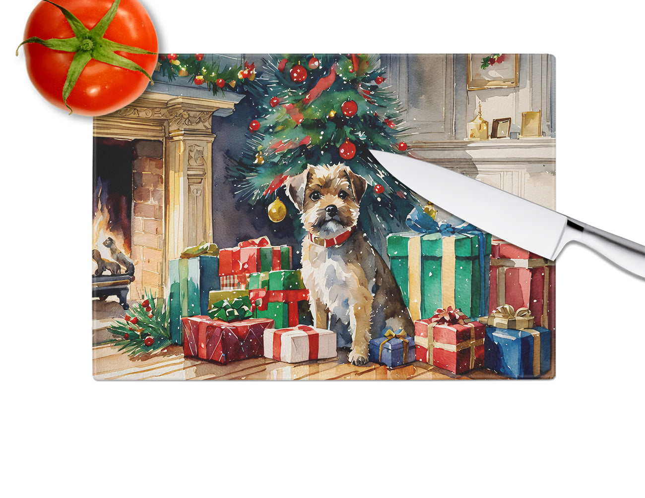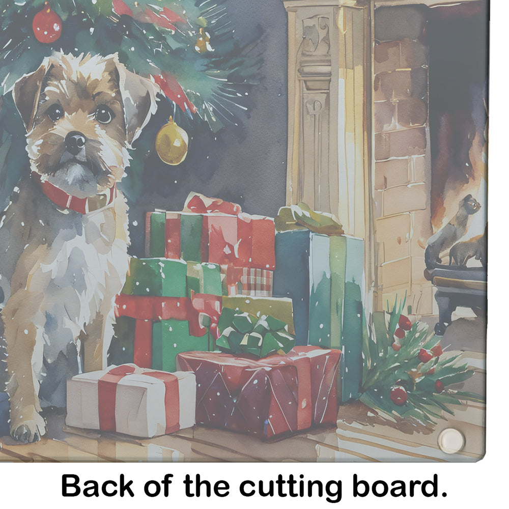 Glass Cutting Board featuring breed specific Border Terrier artwork. Celebrate Christmas with this Christmas Cutting Board. Introduce your kitchen to the vibrant, large Decorative Glass Cutting Board from Caroline's Treasures. Crafted from resilient tempered glass, this board is not only a utilitarian necessity but also a colorful art piece. With its generous dimensions of 15 inches in height and 12 inches in length, it offers ample space for all your cutting needs. Every piece showcases captivating artwork from distinguished artists, bringing an aesthetic edge to your kitchen. Beyond its attractive design, this cutting board ensures your countertop stays pristine and unscathed, owing to its heat-resistant properties. Engineered with user convenience in mind, it features non-skid feet for stability, and rounded corners for additional safety. Its robust construction renders it virtually unbreakable, guaranteeing longevity. The board comes with protective feet bumpers, maintaining its position during use. This product is recommended to be hand washed only. Proudly printed and assembled in the United States, this cutting board exemplifies superior craftsmanship. With Caroline's Treasures' Decorative Glass Cutting Board, you're investing in a blend of functionality and artistic flair.