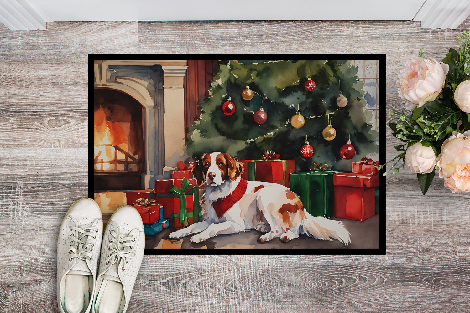 Doormat featuring breed specific Brittany artwork. Celebrate Christmas with this Christmas Doormat. Welcome your guests in style with our Artwork Door Mat, designed to withstand almost any weather condition. This mat, measuring approximately 24 by 36 inches, is held together by durable black binding tape. Its top layer, composed of polyester felt, is dyed with the eye-catching image you see on the mat. A few layers below provide the mat with stability, while its rubber bottom is stamped to help prevent slipping and ensures safety. Our mat works wonderfully as both an indoor or outdoor door mat. For cleaning, simply hose it off with water or use a power washer - no need for any cleaner that produces suds. Avoid scrubbing with a brush, instead, opt for the vacuum on floor setting. Designed manufactured and printed in the USA, this mat is a perfect addition to your porch, outdoor kitchen, entryway, or any indoor space. Its unique design makes it a charming decorative rug that greets your guests and adds a stylish touch to your home decor.