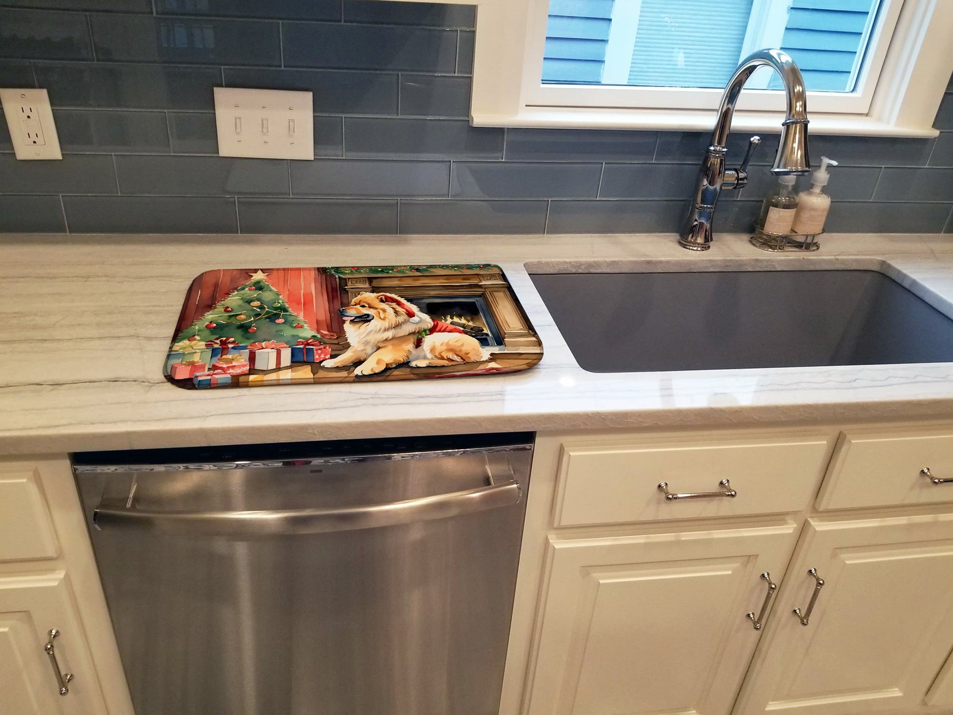 Dish Drying Mat featuring breed specific Chow Chow artwork. Celebrate Christmas with this Christmas Dish Drying Mat. Say goodbye to messy countertops and soggy dish towels with our innovative dish drying mat. Our high-quality dish drying pad is designed to keep your countertops dry while offering a stylish and efficient solution. Whether you're air drying dishes, glasses, stemware, silverware, pots, pans, bottles, or even fruits and vegetables, our dish mat is the perfect choice. The 14 inches x 22 inches size fits most counters and dish drying racks, and the non-slip design ensures stability. Made with water-absorbent polyester and a polyurethane foam insert, our dish drying mat is not only functional but also durable. It's machine washable and printed in the USA for long-lasting use. The beautiful artwork adds flair to your kitchen decor, making it a perfect housewarming gift or present for any occasion. Upgrade your kitchen experience with our absorbent and versatile dish drying mat.