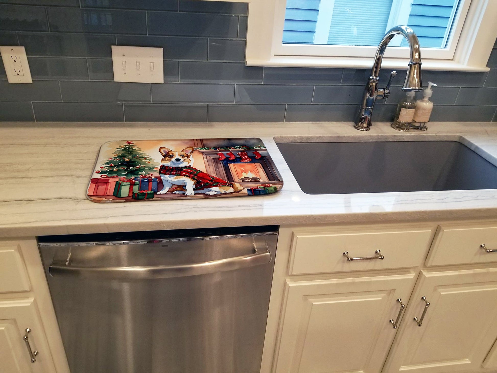 Dish Drying Mat featuring breed specific Corgi artwork. Celebrate Christmas with this Christmas Dish Drying Mat. Say goodbye to messy countertops and soggy dish towels with our innovative dish drying mat. Our high-quality dish drying pad is designed to keep your countertops dry while offering a stylish and efficient solution. Whether you're air drying dishes, glasses, stemware, silverware, pots, pans, bottles, or even fruits and vegetables, our dish mat is the perfect choice. The 14 inches x 22 inches size fits most counters and dish drying racks, and the non-slip design ensures stability. Made with water-absorbent polyester and a polyurethane foam insert, our dish drying mat is not only functional but also durable. It's machine washable and printed in the USA for long-lasting use. The beautiful artwork adds flair to your kitchen decor, making it a perfect housewarming gift or present for any occasion. Upgrade your kitchen experience with our absorbent and versatile dish drying mat.