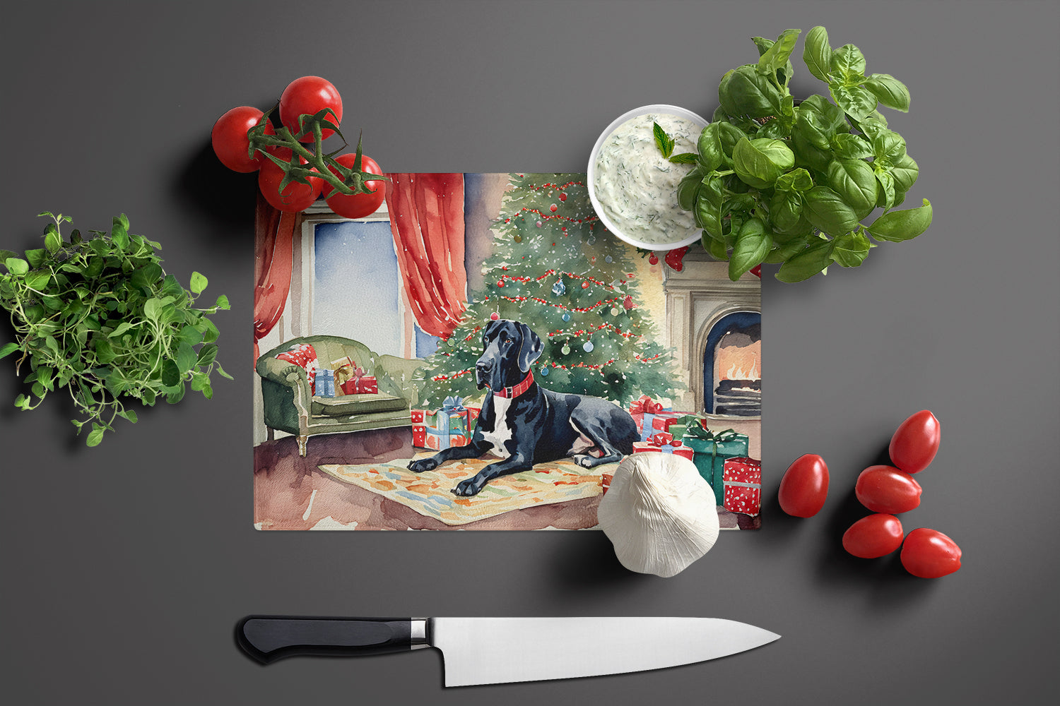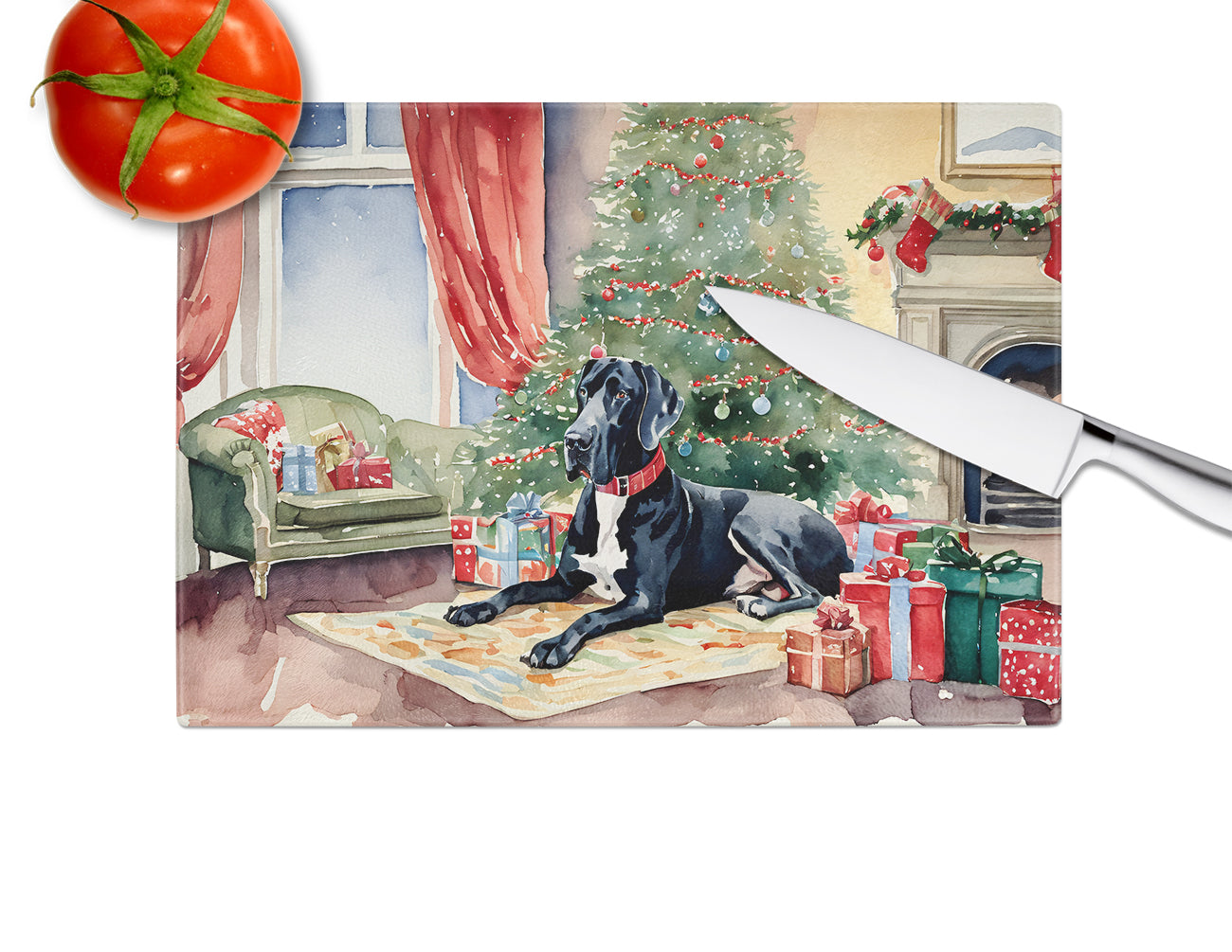 Glass Cutting Board featuring breed specific Great Dane artwork. Celebrate Christmas with this Christmas Cutting Board. Introduce your kitchen to the vibrant, large Decorative Glass Cutting Board from Caroline's Treasures. Crafted from resilient tempered glass, this board is not only a utilitarian necessity but also a colorful art piece. With its generous dimensions of 15 inches in height and 12 inches in length, it offers ample space for all your cutting needs. Every piece showcases captivating artwork from distinguished artists, bringing an aesthetic edge to your kitchen. Beyond its attractive design, this cutting board ensures your countertop stays pristine and unscathed, owing to its heat-resistant properties. Engineered with user convenience in mind, it features non-skid feet for stability, and rounded corners for additional safety. Its robust construction renders it virtually unbreakable, guaranteeing longevity. The board comes with protective feet bumpers, maintaining its position during use. This product is recommended to be hand washed only. Proudly printed and assembled in the United States, this cutting board exemplifies superior craftsmanship. With Caroline's Treasures' Decorative Glass Cutting Board, you're investing in a blend of functionality and artistic flair.