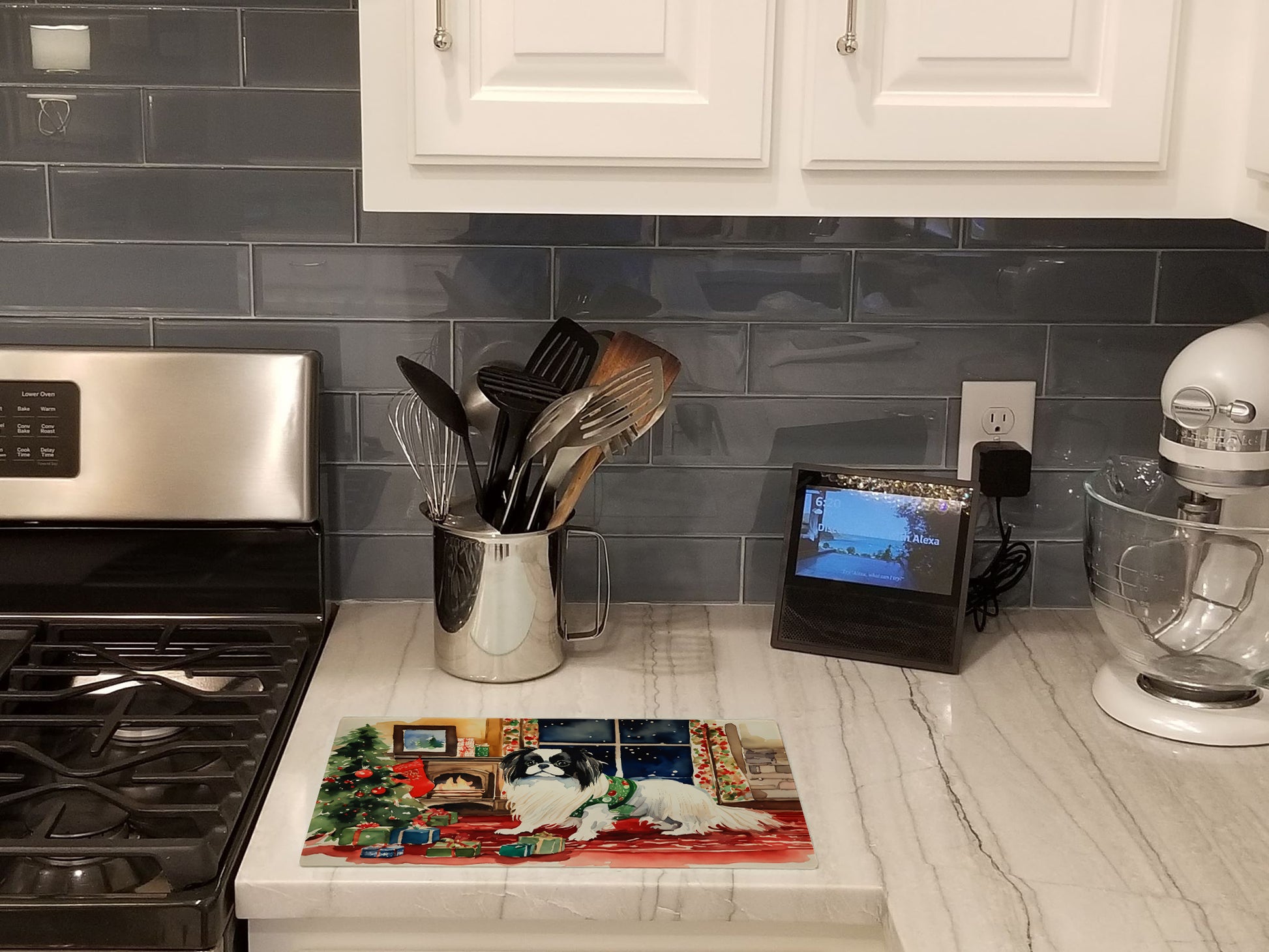 Japanese Chin Cozy Christmas Glass Cutting Board
