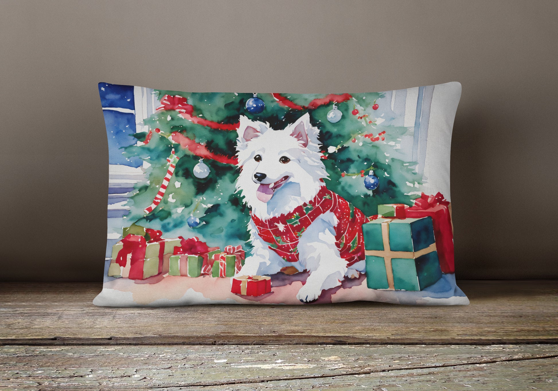 Throw Pillow featuring breed specific Japanese Spitz artwork. Celebrate Christmas with this Christmas Pillow. Embrace the fusion of comfort and style with Caroline's Treasures Fabric Decorative Pillow. This 12x16 inch outdoor pillow is designed to complement your patio furniture, adding a splash of color and artistry to your outdoor setting. Constructed with a 100% Polyester Fabric pillow sham filled with a plush pillow form, this cushion is as comfortable as it is durable. Our outdoor pillow utilizes a novel fabric, meticulously woven for enhanced water resistance. This soft canvas material is equally suited for your indoor couch as well as outdoor settings such as the patio, porch, or veranda. To ensure enduring vibrance, we employ colorfast dyes resistant to fading even when subjected to weather elements. The making of this pillow involves the delicate sewing together of three fabric pieces to create a sham, into which a polyester insert is carefully placed. The result is an overstuffed pillow that tenaciously holds its shape. With both the sham and the pillow insert crafted in the United States, these handmade pillows are a testament to superior local craftsmanship. Note that as these pillows are handmade, sizes may slightly vary, enhancing their unique appeal. Enjoy comfort in style with Caroline's Treasures Fabric Decorative Pillow.
