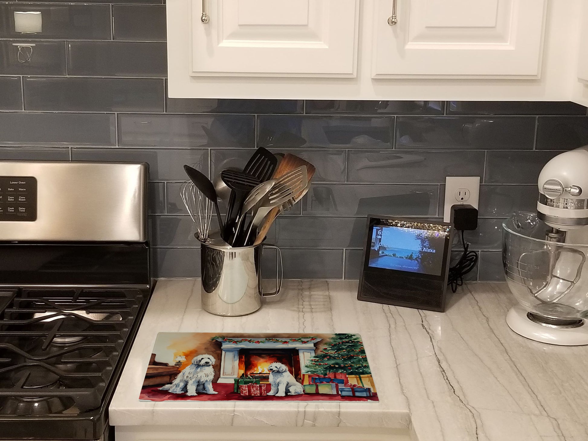 Glass Cutting Board featuring breed specific Komondor artwork. Celebrate Christmas with this Christmas Cutting Board. Introduce your kitchen to the vibrant, large Decorative Glass Cutting Board from Caroline's Treasures. Crafted from resilient tempered glass, this board is not only a utilitarian necessity but also a colorful art piece. With its generous dimensions of 15 inches in height and 12 inches in length, it offers ample space for all your cutting needs. Every piece showcases captivating artwork from distinguished artists, bringing an aesthetic edge to your kitchen. Beyond its attractive design, this cutting board ensures your countertop stays pristine and unscathed, owing to its heat-resistant properties. Engineered with user convenience in mind, it features non-skid feet for stability, and rounded corners for additional safety. Its robust construction renders it virtually unbreakable, guaranteeing longevity. The board comes with protective feet bumpers, maintaining its position during use. This product is recommended to be hand washed only. Proudly printed and assembled in the United States, this cutting board exemplifies superior craftsmanship. With Caroline's Treasures' Decorative Glass Cutting Board, you're investing in a blend of functionality and artistic flair.