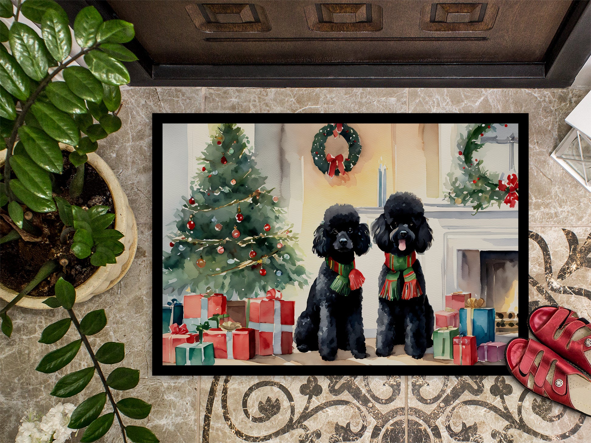 Doormat featuring breed specific Poodle artwork. Celebrate Christmas with this Christmas Doormat. Welcome your guests in style with our Artwork Door Mat, designed to withstand almost any weather condition. This mat, measuring approximately 18 by 27 inches, is held together by durable black binding tape. Its top layer, composed of polyester felt, is dyed with the eye-catching image you see on the mat. A few layers below provide the mat with stability, while its rubber bottom is stamped to help prevent slipping and ensures safety. Our mat works wonderfully as both an indoor or outdoor door mat. For cleaning, simply hose it off with water or use a power washer - no need for any cleaner that produces suds. Avoid scrubbing with a brush, instead, opt for the vacuum on floor setting. Designed manufactured and printed in the USA, this mat is a perfect addition to your porch, outdoor kitchen, entryway, or any indoor space. Its unique design makes it a charming decorative rug that greets your guests and adds a stylish touch to your home decor.