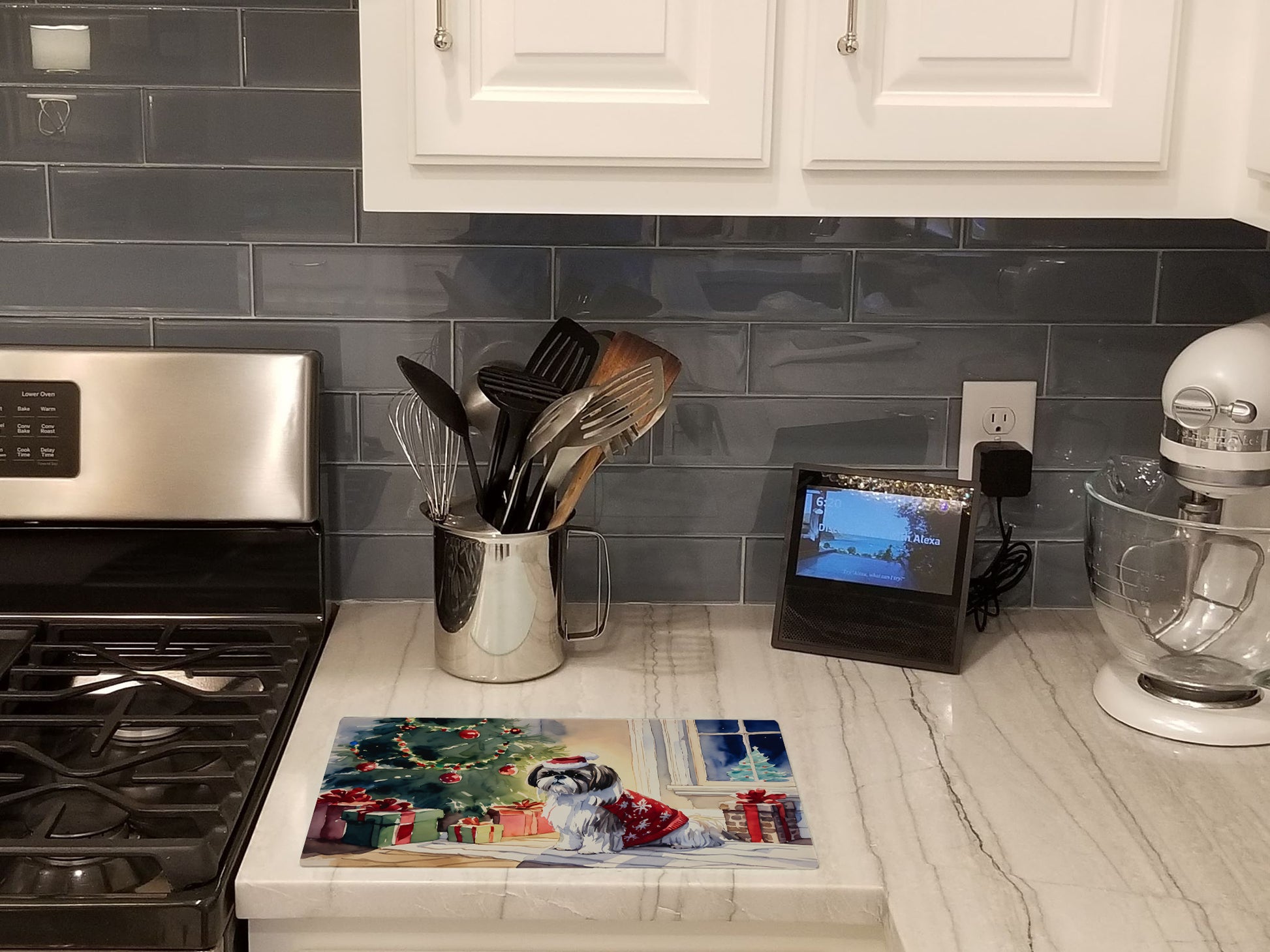 Glass Cutting Board featuring breed specific Shih Tzu artwork. Celebrate Christmas with this Christmas Cutting Board. Introduce your kitchen to the vibrant, large Decorative Glass Cutting Board from Caroline's Treasures. Crafted from resilient tempered glass, this board is not only a utilitarian necessity but also a colorful art piece. With its generous dimensions of 15 inches in height and 12 inches in length, it offers ample space for all your cutting needs. Every piece showcases captivating artwork from distinguished artists, bringing an aesthetic edge to your kitchen. Beyond its attractive design, this cutting board ensures your countertop stays pristine and unscathed, owing to its heat-resistant properties. Engineered with user convenience in mind, it features non-skid feet for stability, and rounded corners for additional safety. Its robust construction renders it virtually unbreakable, guaranteeing longevity. The board comes with protective feet bumpers, maintaining its position during use. This product is recommended to be hand washed only. Proudly printed and assembled in the United States, this cutting board exemplifies superior craftsmanship. With Caroline's Treasures' Decorative Glass Cutting Board, you're investing in a blend of functionality and artistic flair.