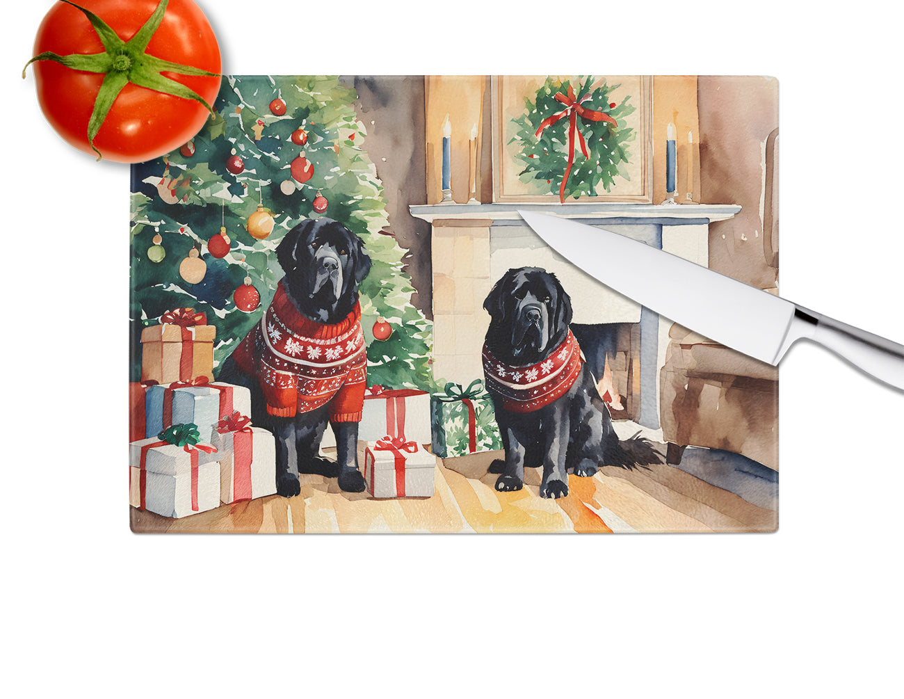 Glass Cutting Board featuring breed specific Tibetan Mastiff artwork. Celebrate Christmas with this Christmas Cutting Board. Introduce your kitchen to the vibrant, large Decorative Glass Cutting Board from Caroline's Treasures. Crafted from resilient tempered glass, this board is not only a utilitarian necessity but also a colorful art piece. With its generous dimensions of 15 inches in height and 12 inches in length, it offers ample space for all your cutting needs. Every piece showcases captivating artwork from distinguished artists, bringing an aesthetic edge to your kitchen. Beyond its attractive design, this cutting board ensures your countertop stays pristine and unscathed, owing to its heat-resistant properties. Engineered with user convenience in mind, it features non-skid feet for stability, and rounded corners for additional safety. Its robust construction renders it virtually unbreakable, guaranteeing longevity. The board comes with protective feet bumpers, maintaining its position during use. This product is recommended to be hand washed only. Proudly printed and assembled in the United States, this cutting board exemplifies superior craftsmanship. With Caroline's Treasures' Decorative Glass Cutting Board, you're investing in a blend of functionality and artistic flair.